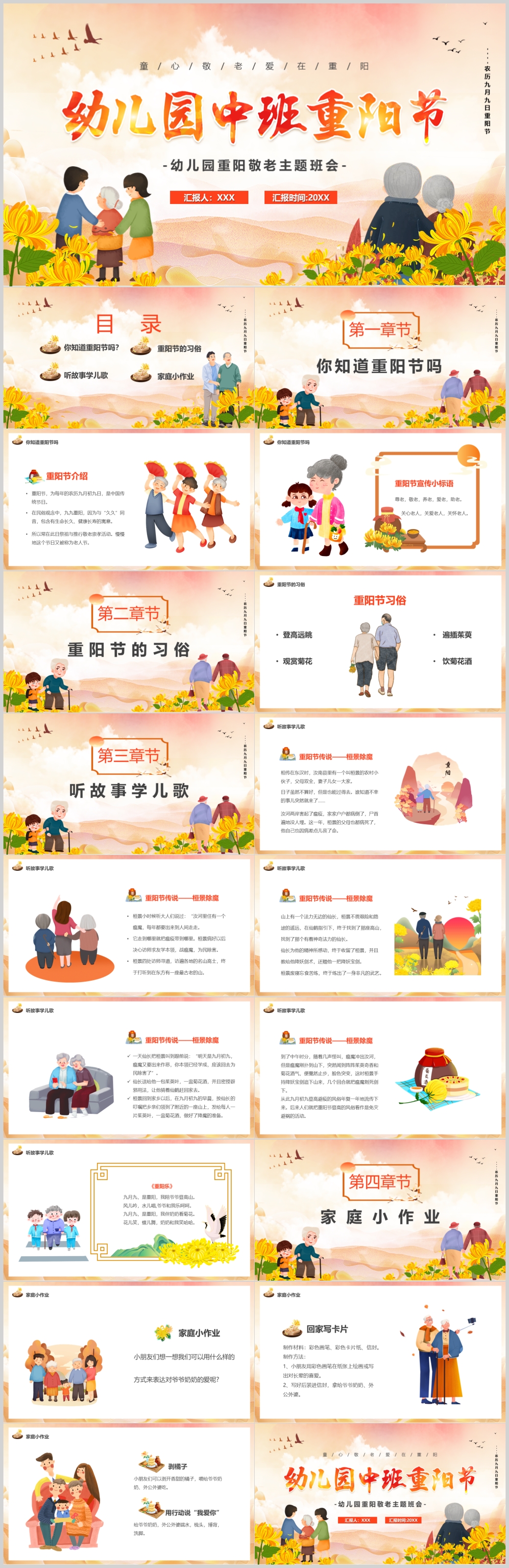 卡通幼儿园小学生关爱老人敬老院九九重阳节佳节主题班会ppt模板