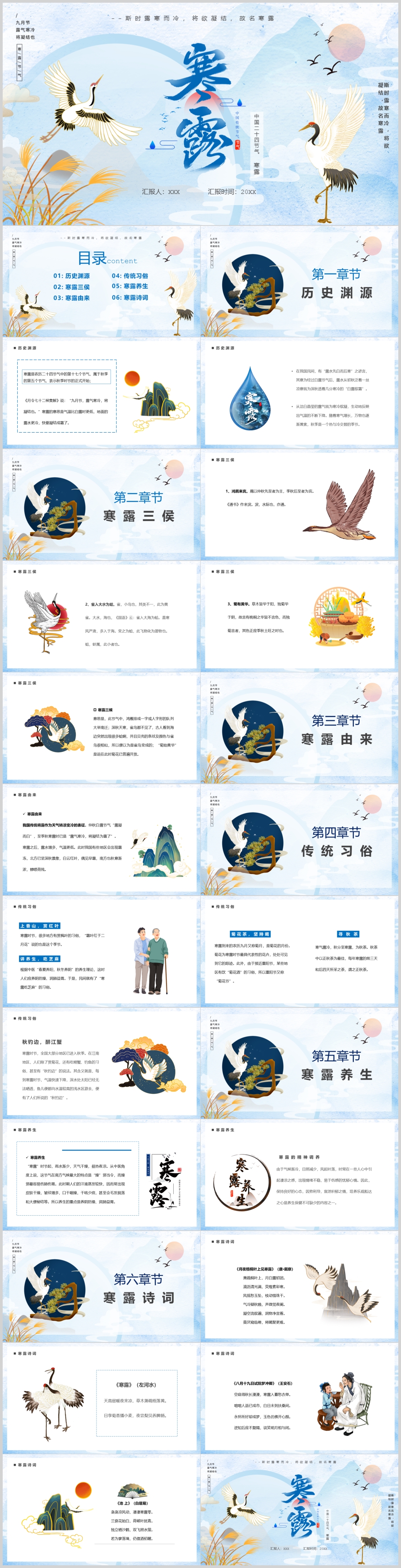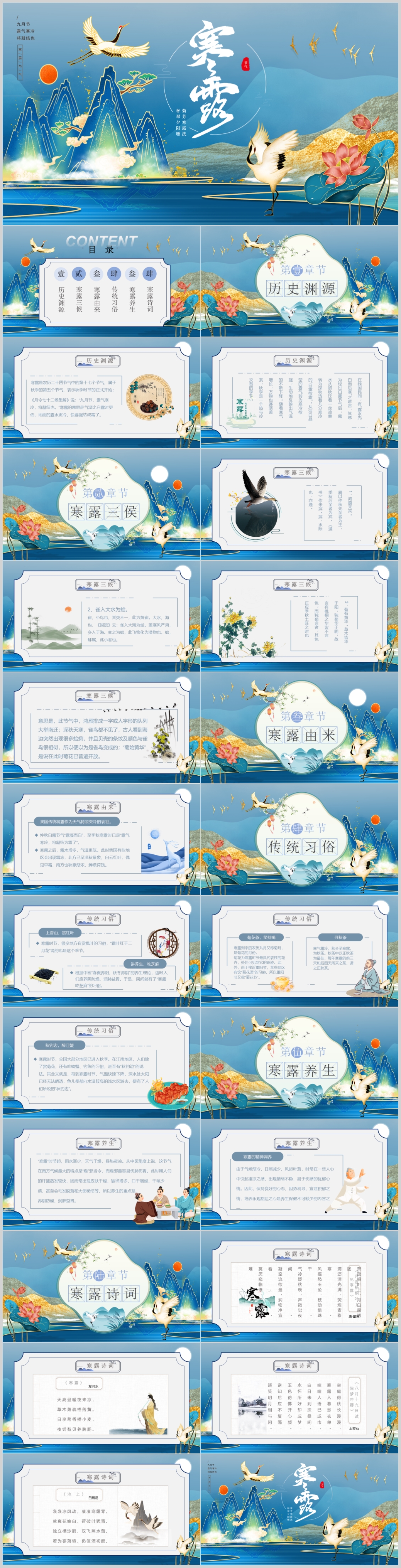 中国风二十四节气寒露主题班会教育课件PPT模板
