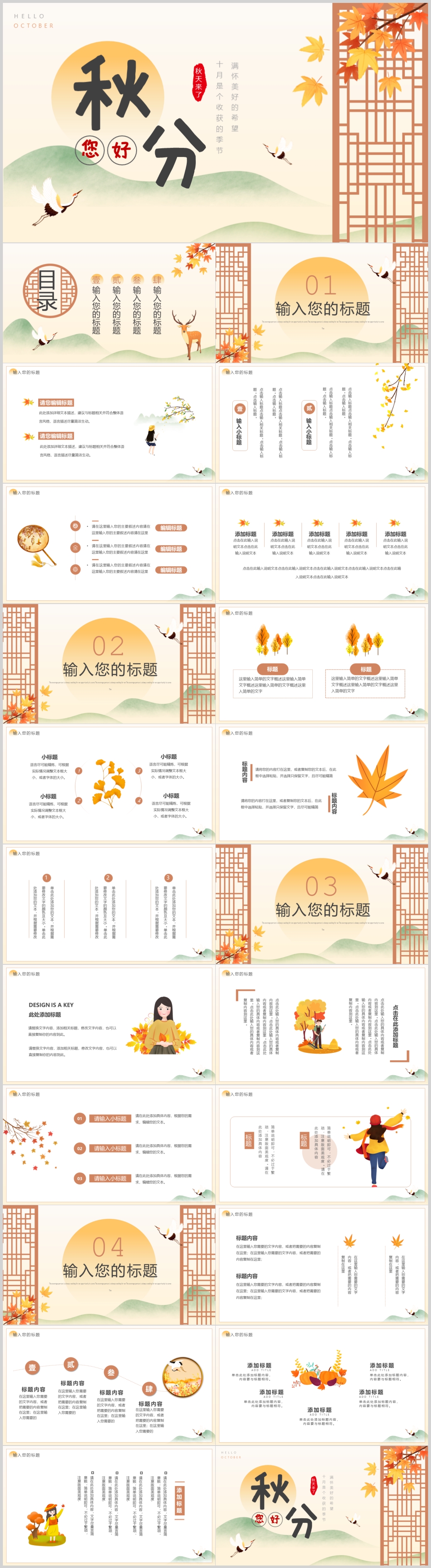 秋分介绍唯美中国风二十四节气国潮教育教学ppt模板