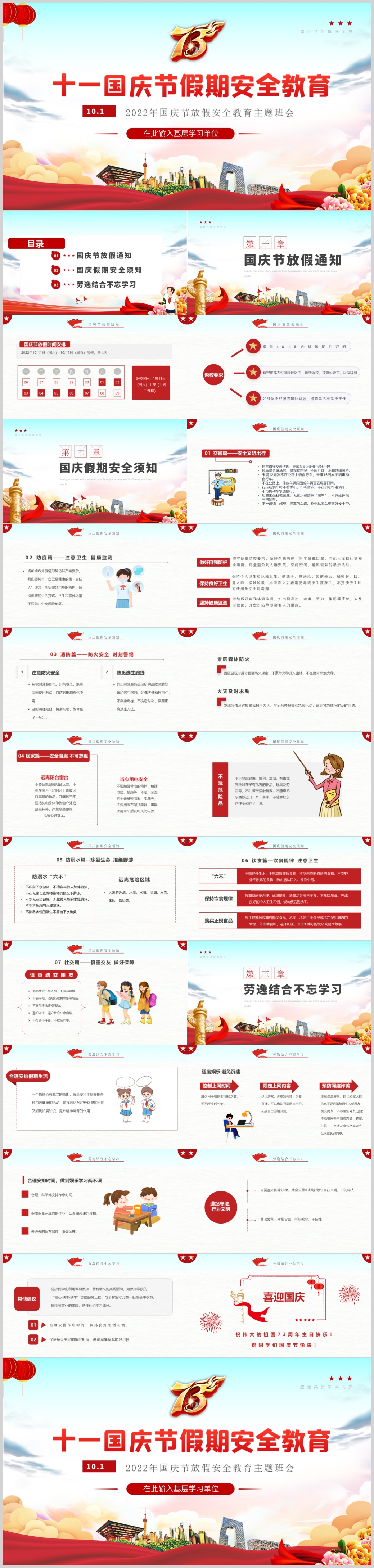 2022年十一国庆节放假安全教育主题班会课件PPT模板