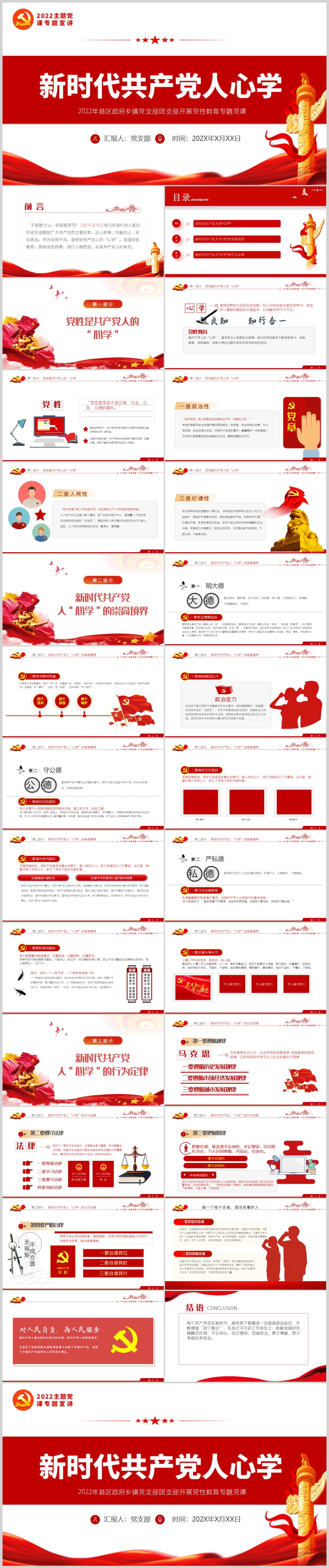 2022基层党组织党支部新时代共产党人心学党员教育课件PPT模板(内含WORD演讲稿
