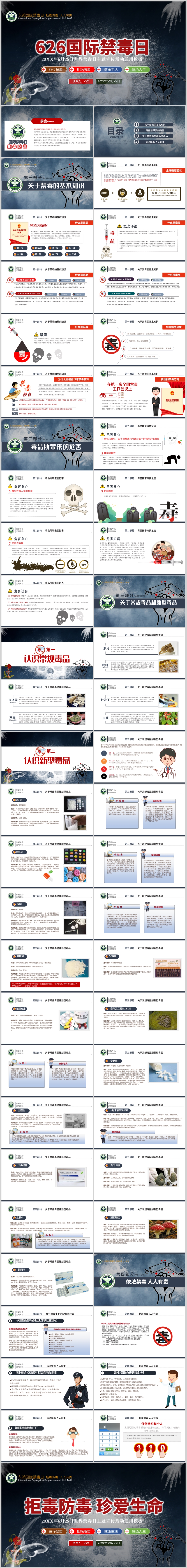626国际禁毒日拒毒防毒珍爱生命主题宣传教育课件PPT模板