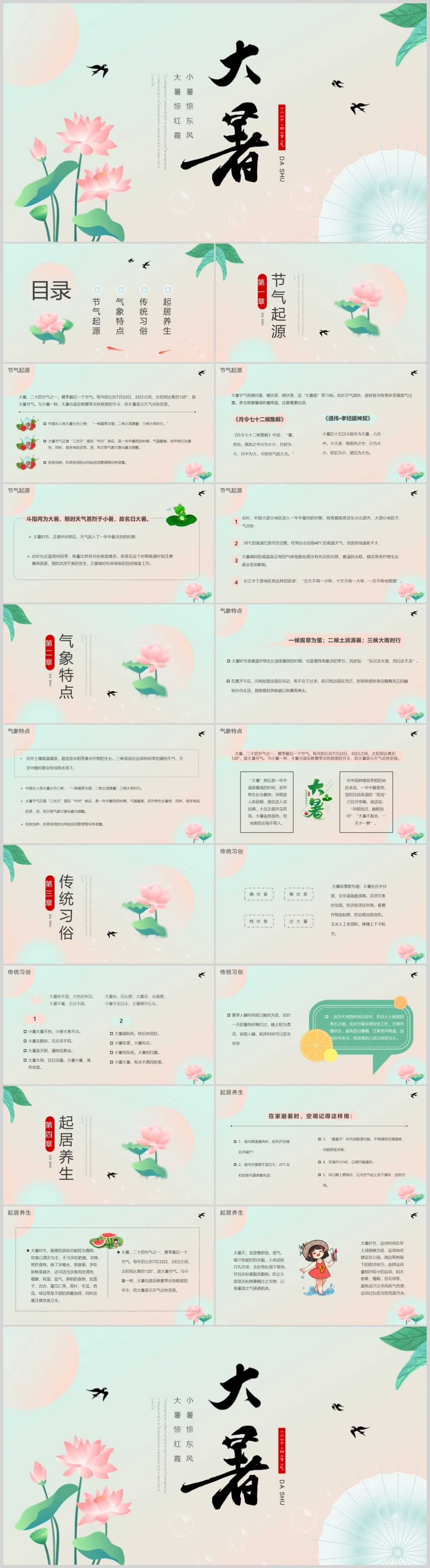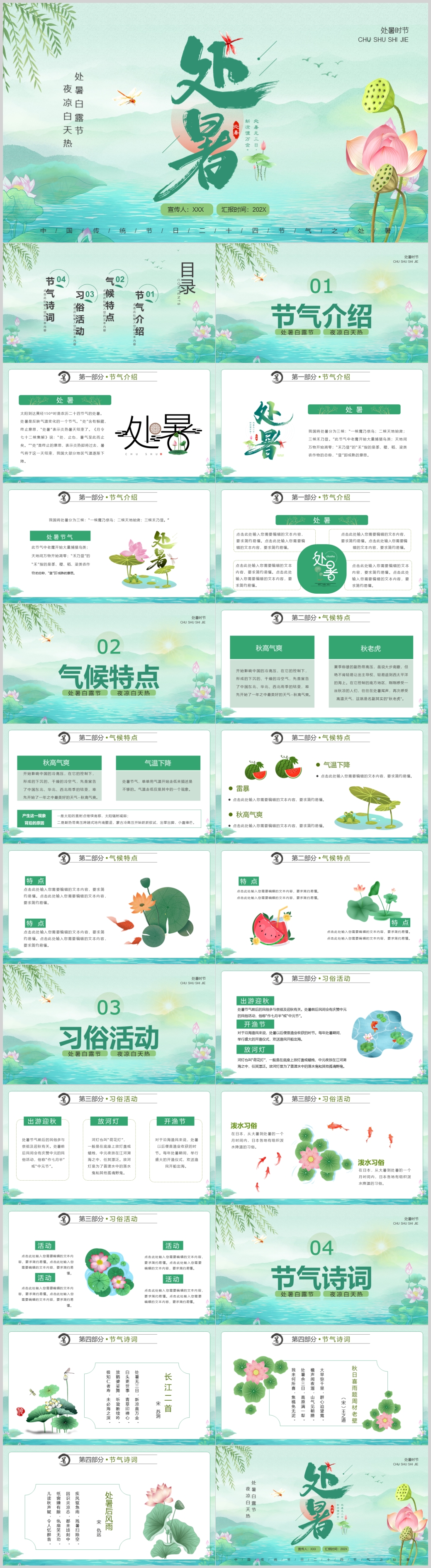 小清新丰收季节秋天秋季二十四节气处暑节日介绍PPT模板