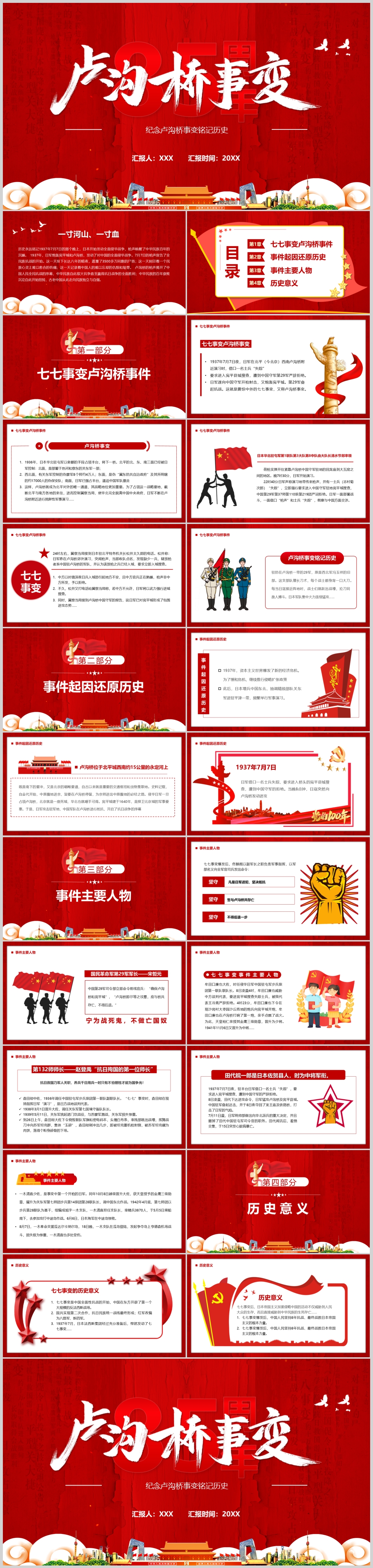 红色纪念卢沟桥事变铭记历史七七事变党课PPT模板