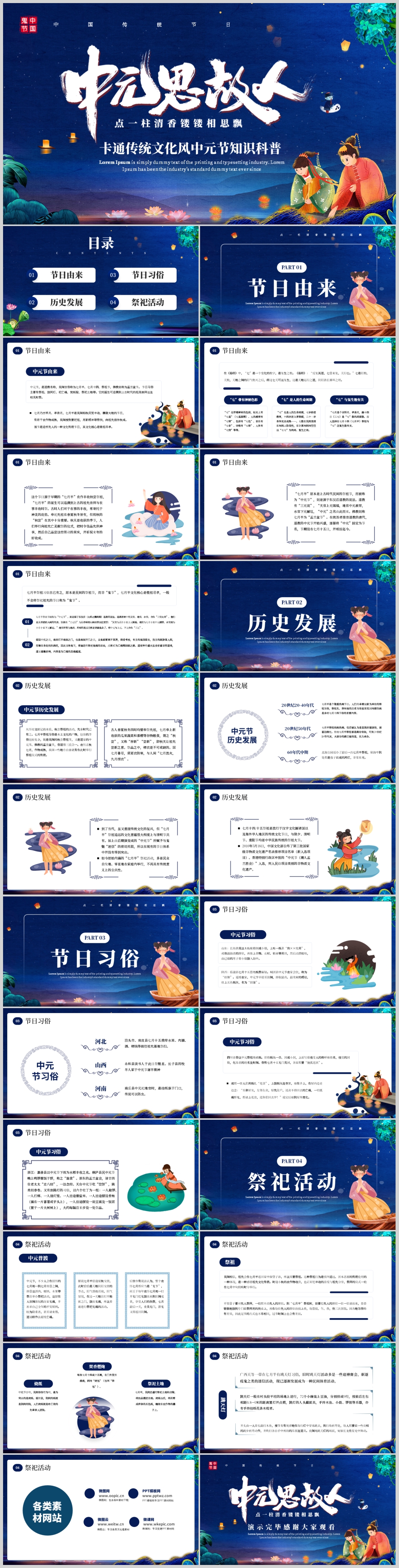 卡通传统文化风中元节知识科普主题介绍PPT模板