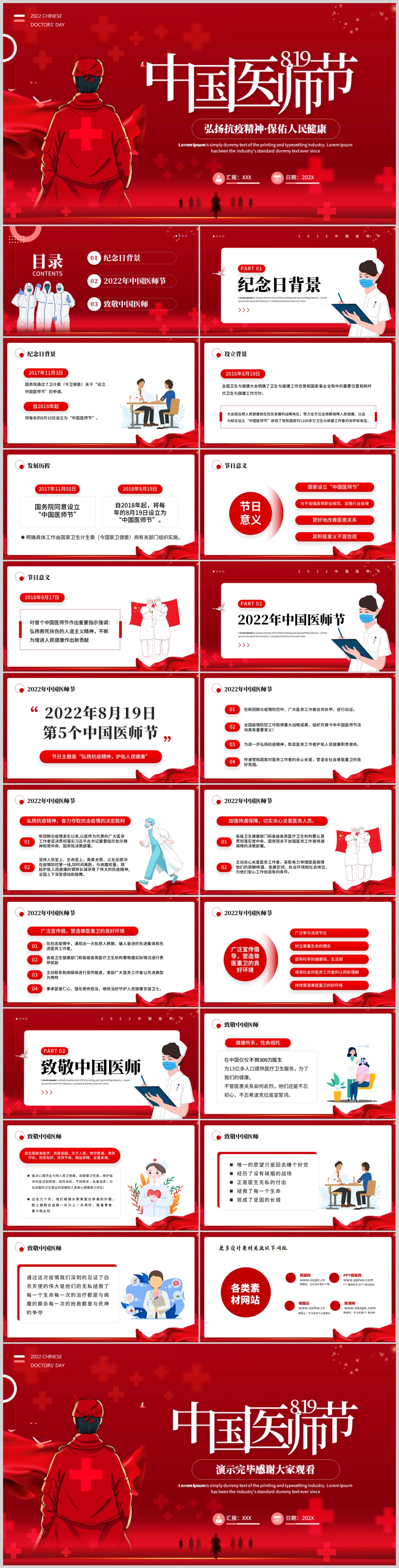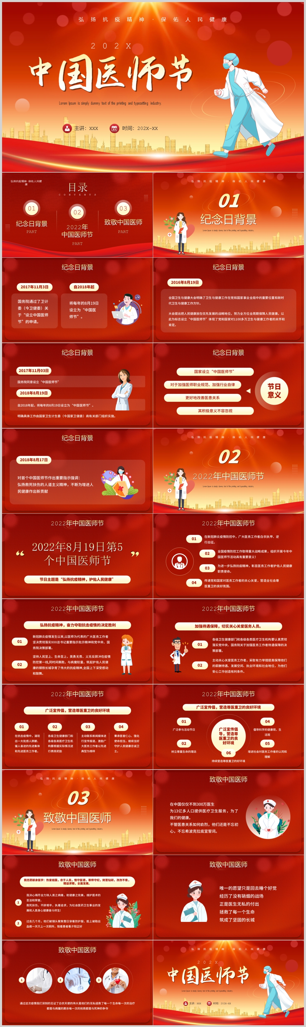 红色致敬医护人员中国医师节节日介绍课件PPT模板