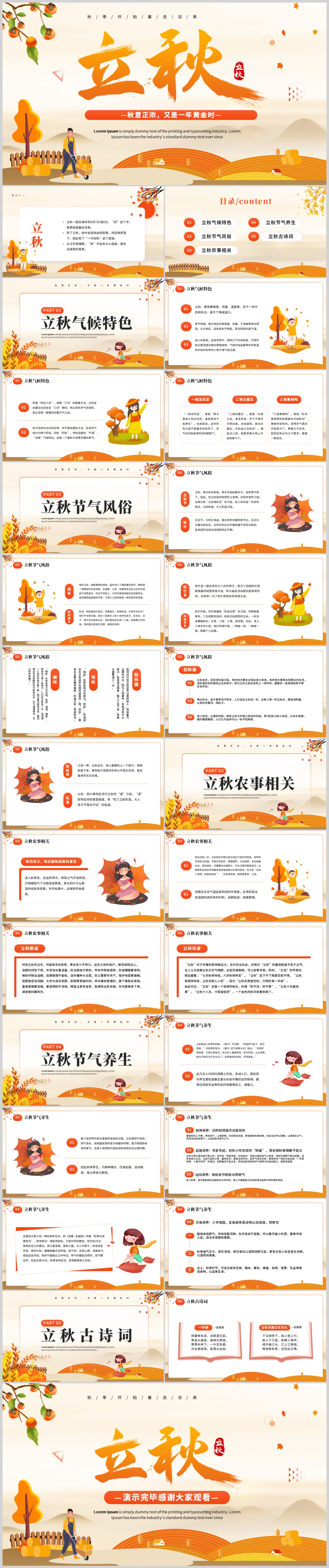 金色立秋秋天丰收金秋银杏麦田二十四节气介绍PPT模板