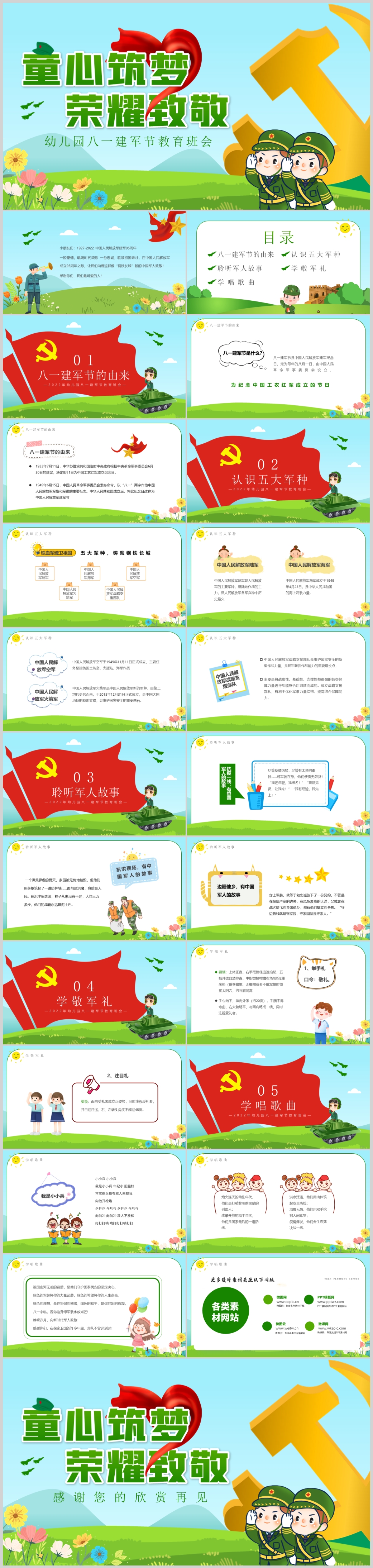 卡通幼儿园中小学生八一建军节教育主题班会课件PPT模板
