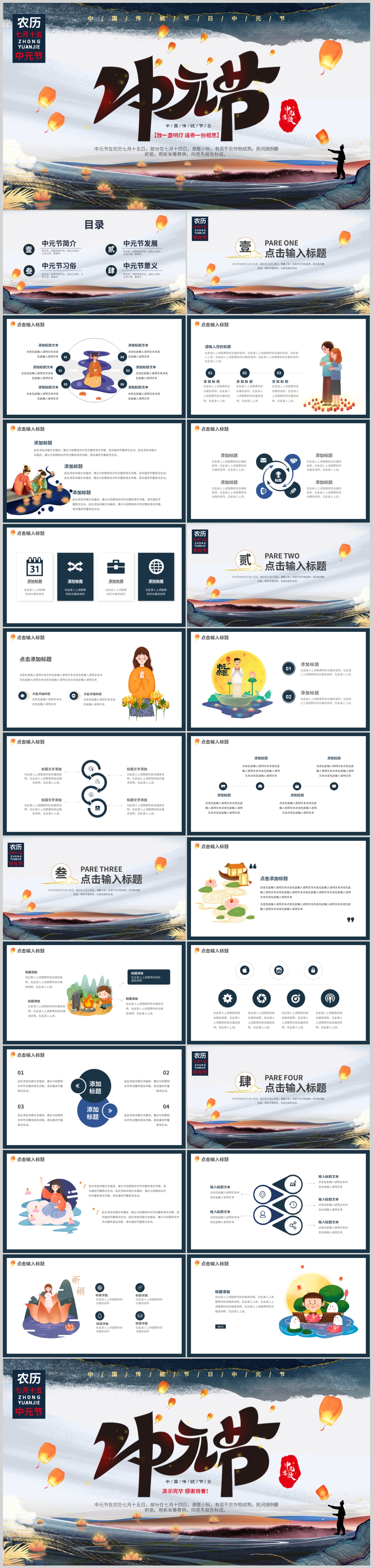 水墨中国风七月半中元节主题介绍通用PPT模板