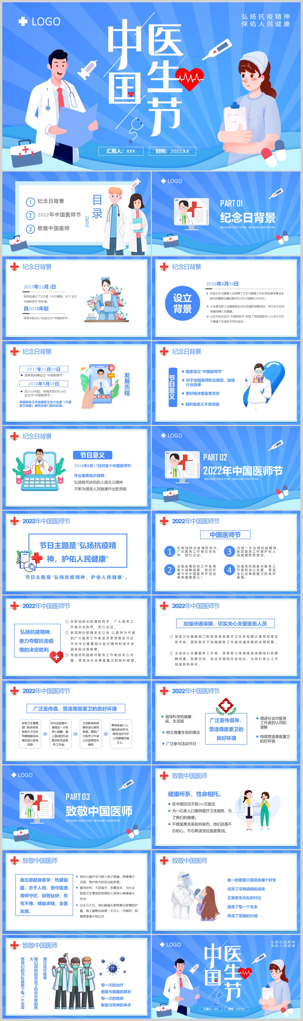 蓝色2022中国医师节主题宣传课件介绍PPT模板