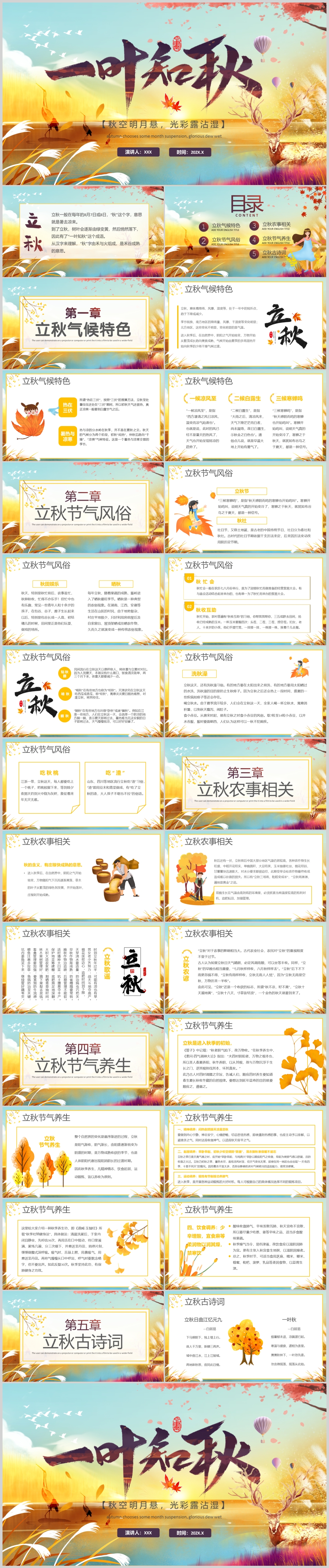 一叶知秋立秋金秋丰收季节秋天二十四节气立秋PPT模板