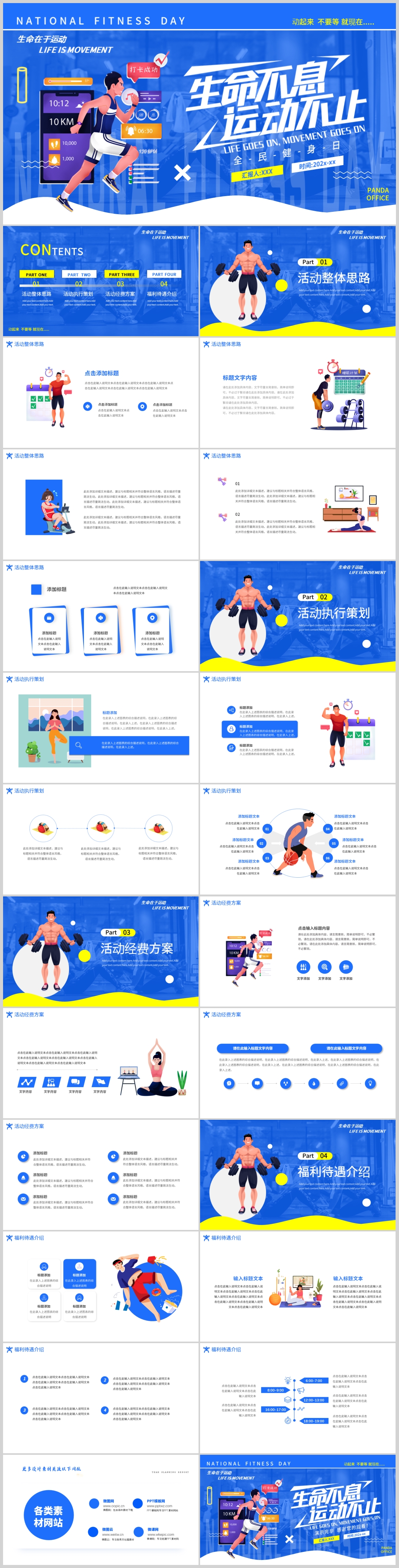 蓝色生命不息运动不止全民健身日运动PPT模板