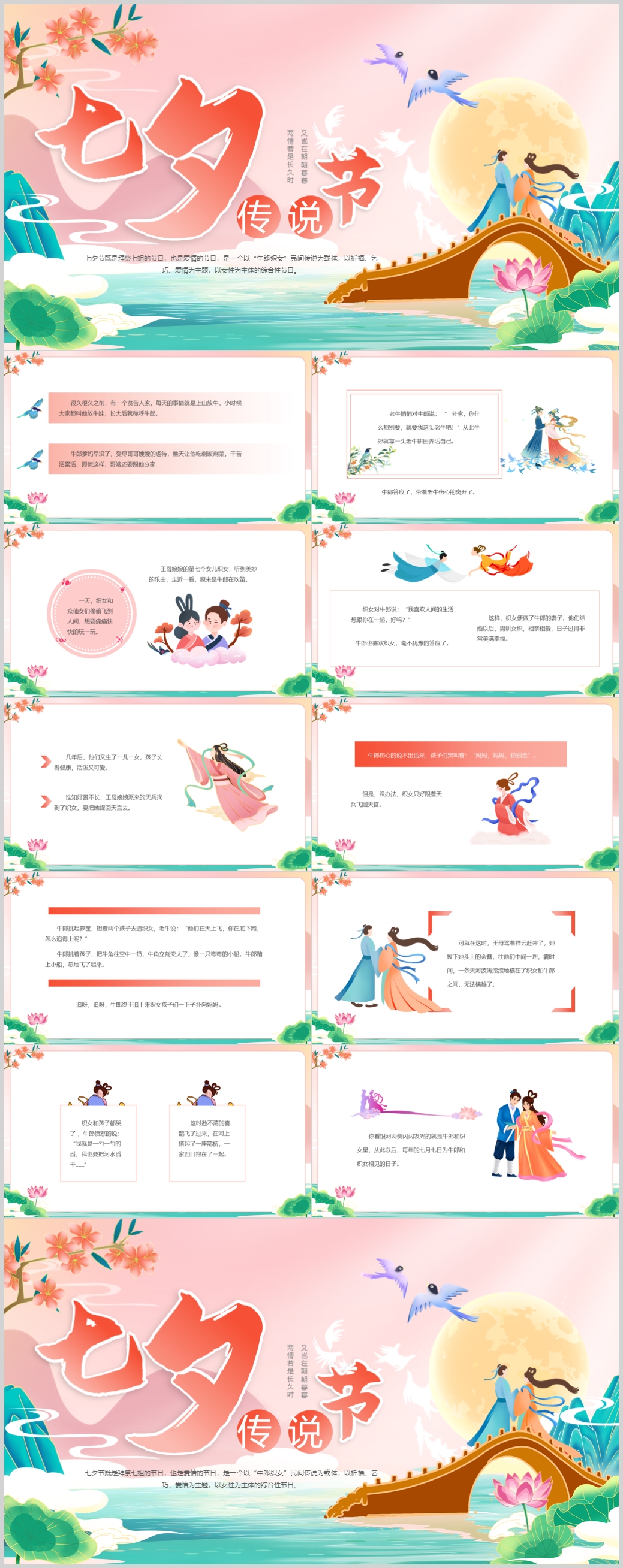 国风浪漫传统七夕情人节活动策划介绍PPT模板