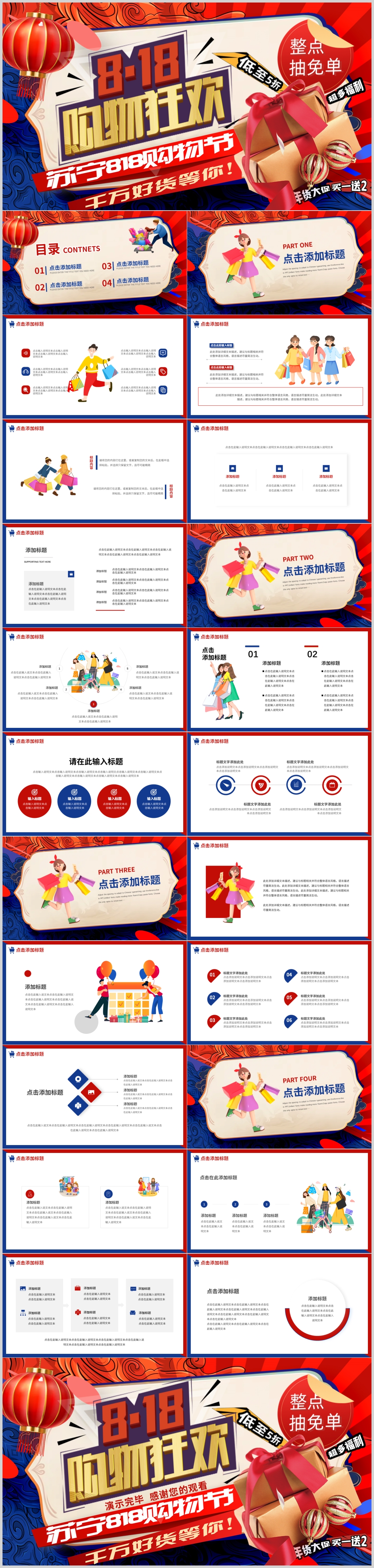 818购物节电商促销暑期开学季促销活动通用PPT模板