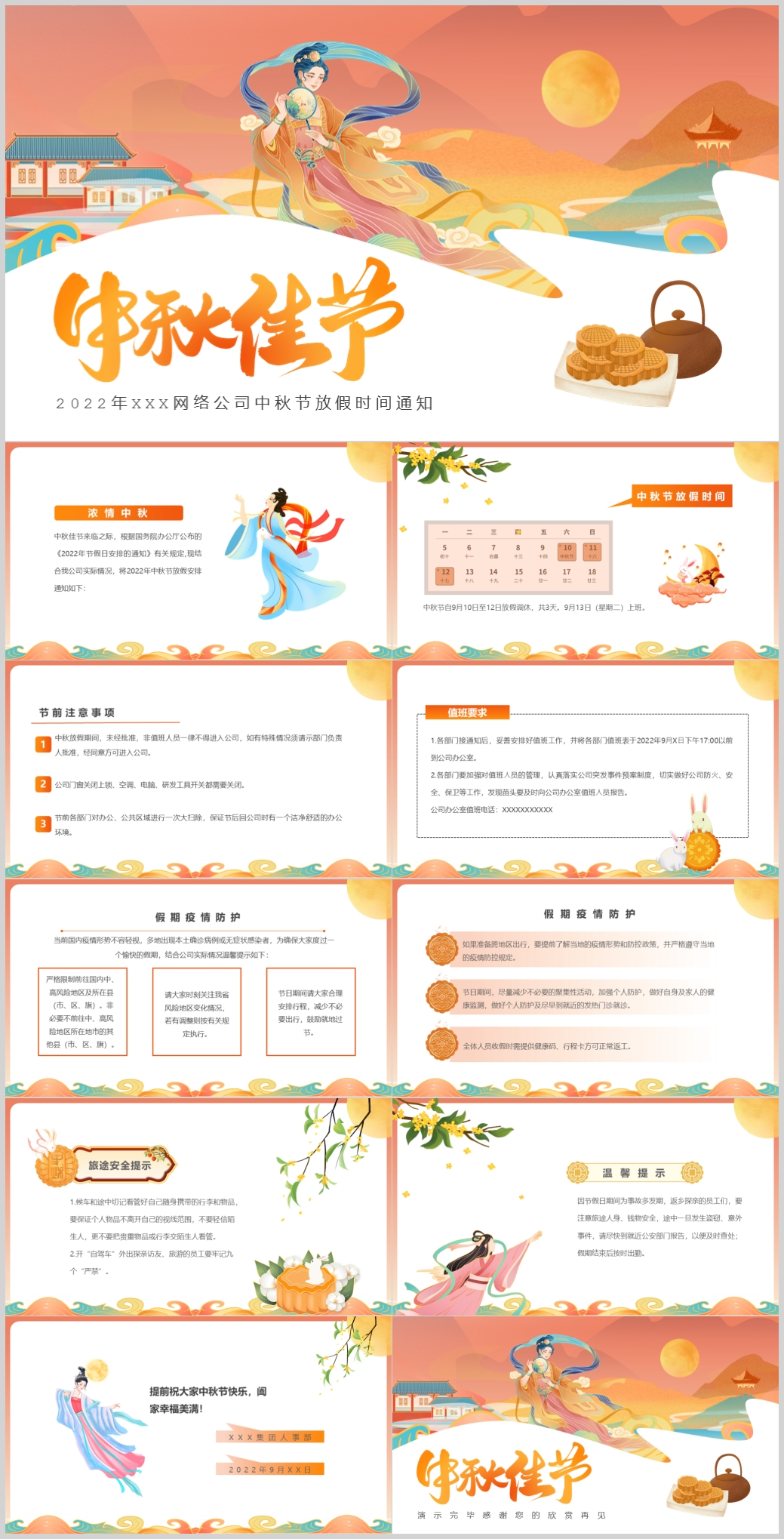 2022年贺中秋迎国庆中秋节放假时间通知PPT模板