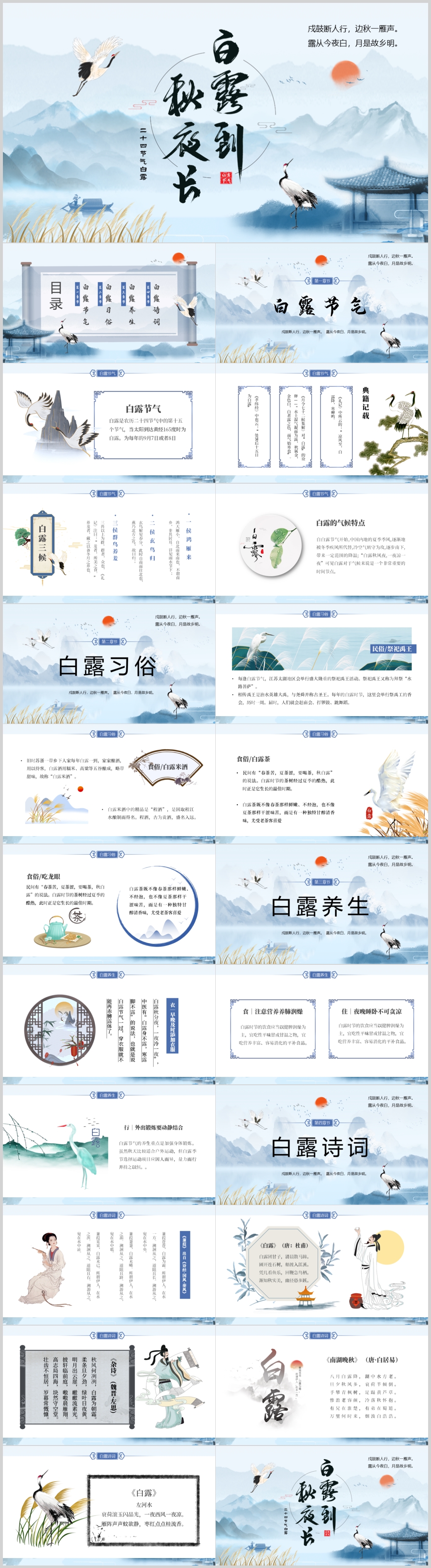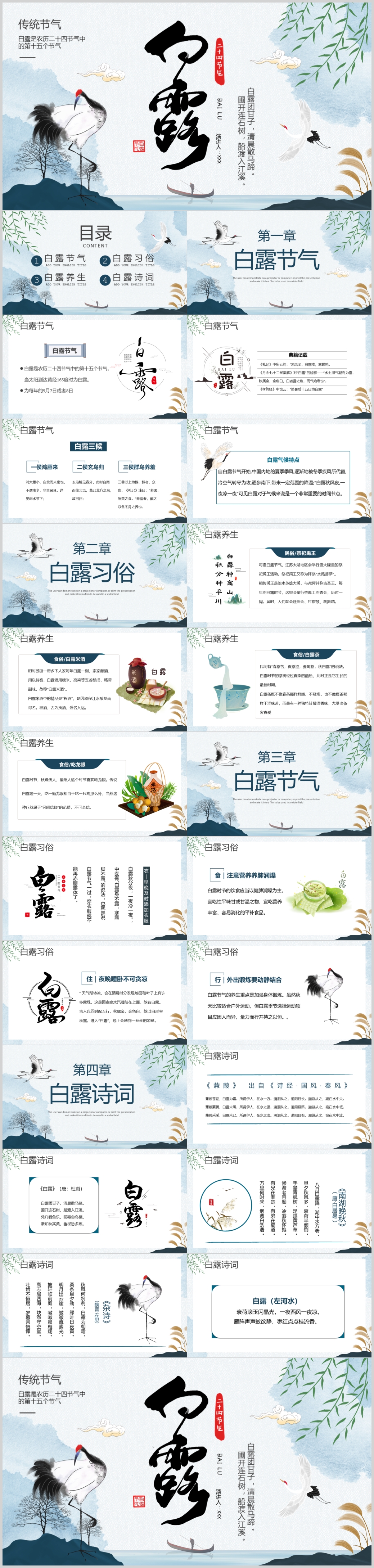蓝色中国风二十四节气白露节气教学课件PPT模板