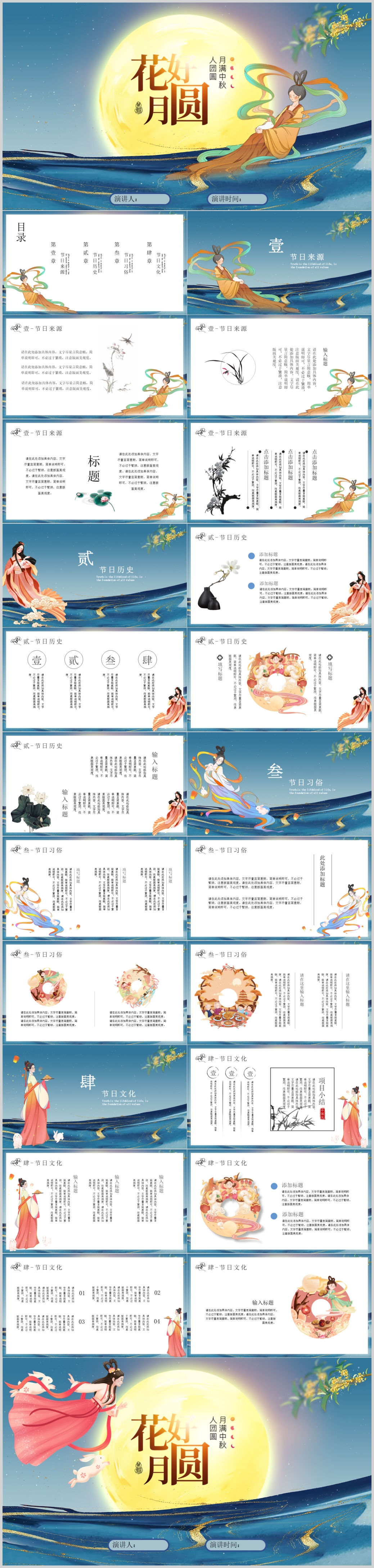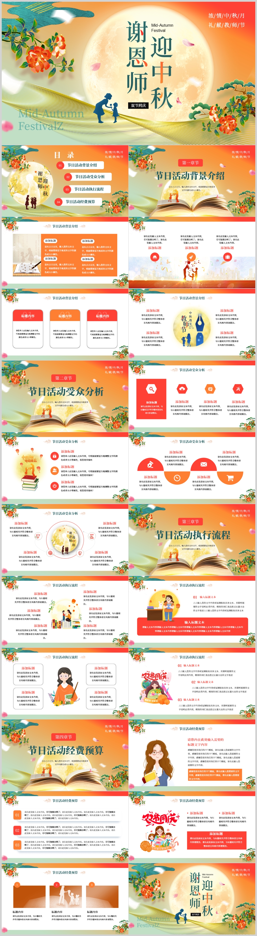 2022中国风谢恩师迎中秋节日介绍课件PPT模板