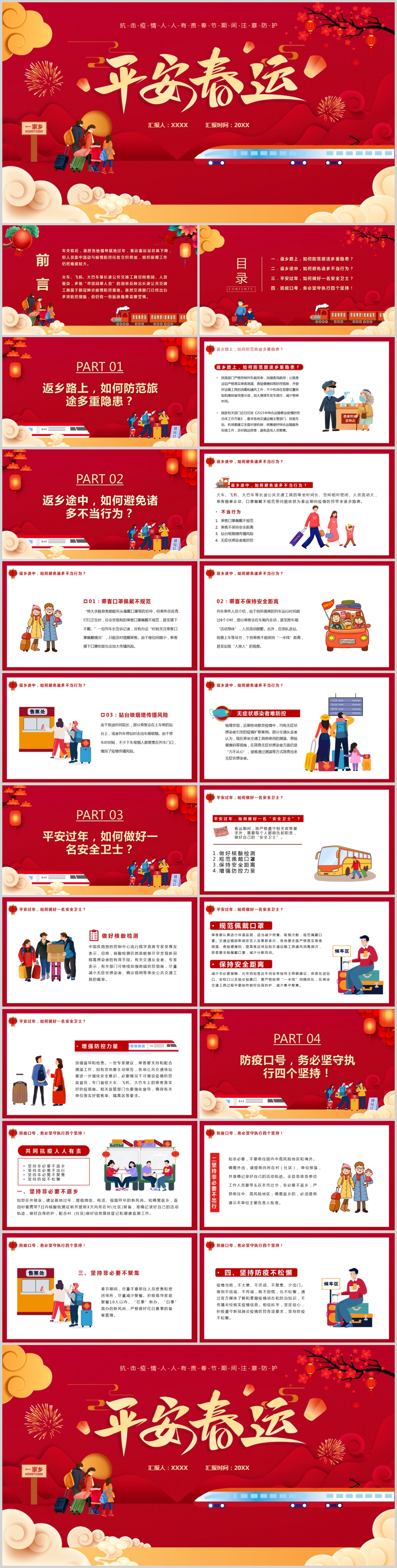 卡通中国风平安春运疫情防控PPT模板