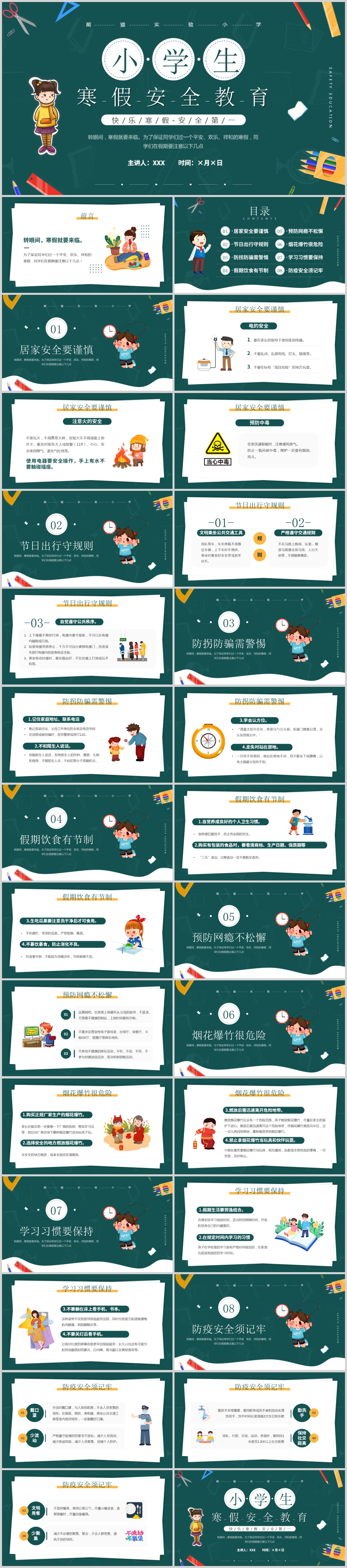 卡通风小学生寒假安全教育PPT模板
