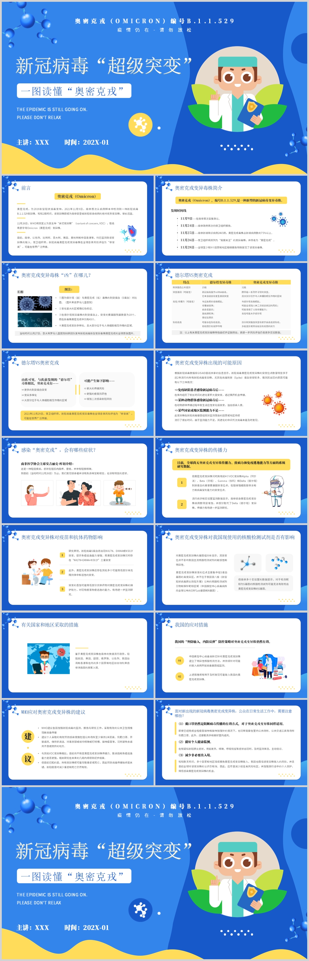 蓝色新冠突变奥密克戎病毒知识讲解PPT模板