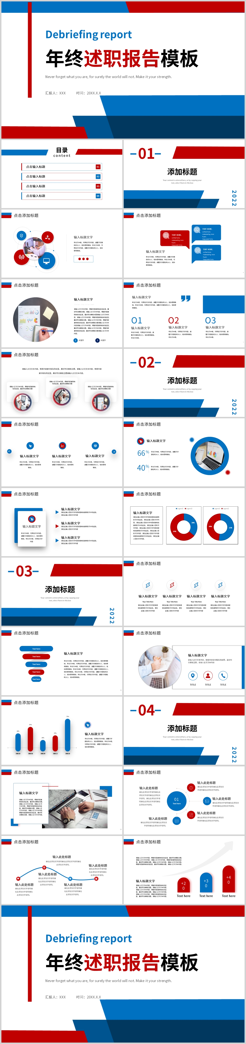 红蓝撞色简约年终总结述职报告PPT模板