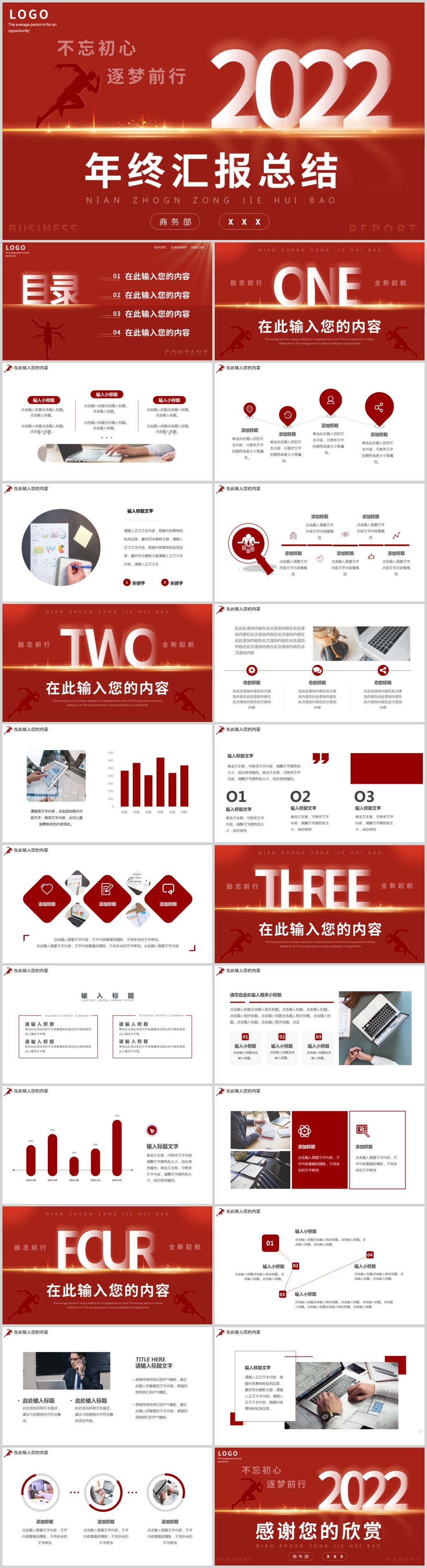 红色创意2022年终总结汇报通用动态PPT模板