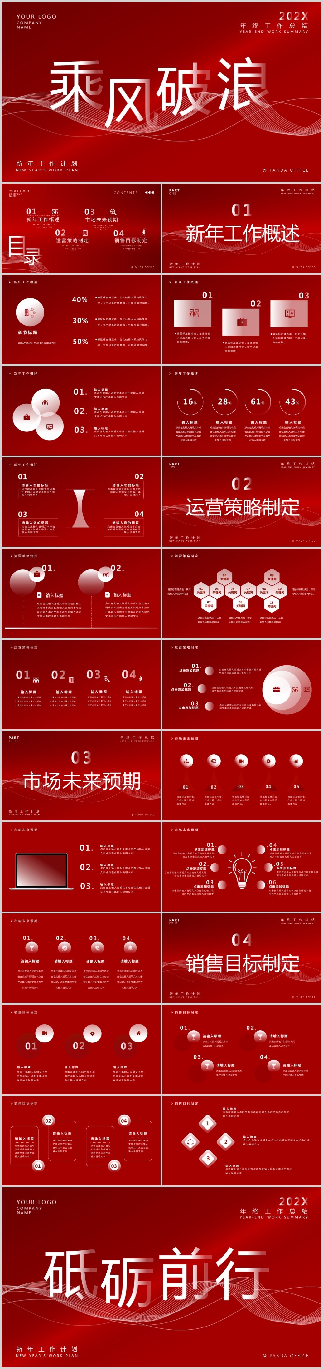 红色大气年终工作总结新年计划动态PPT模板