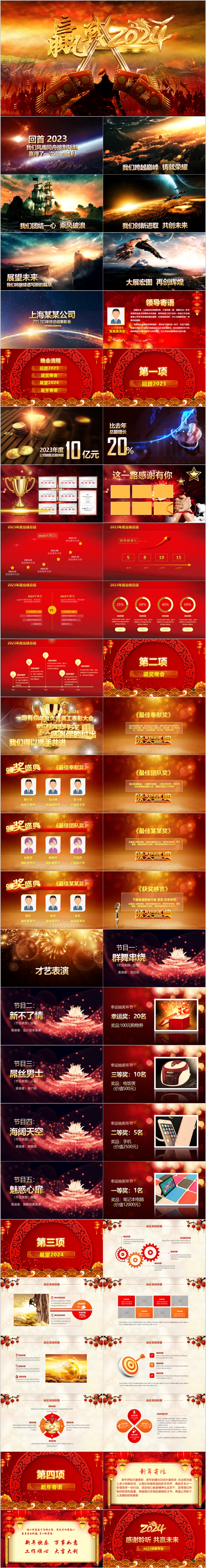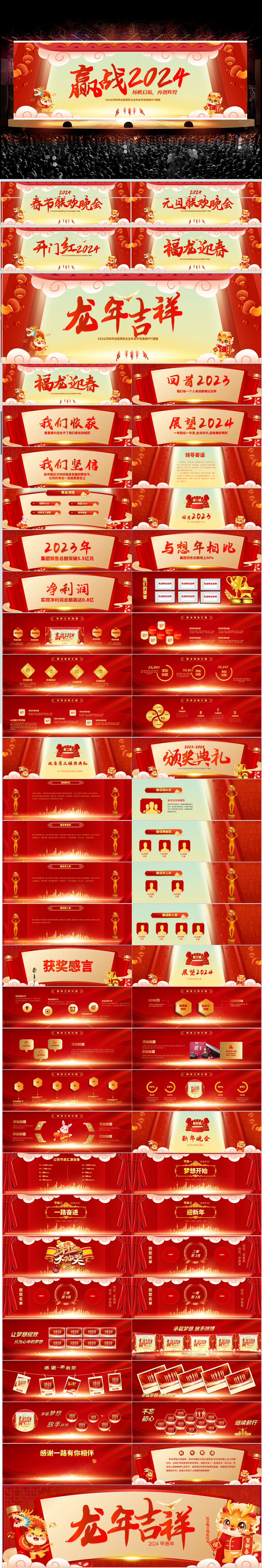 赢战龙年2024喜庆企业新年春节年终表彰颁奖年会ppt模板