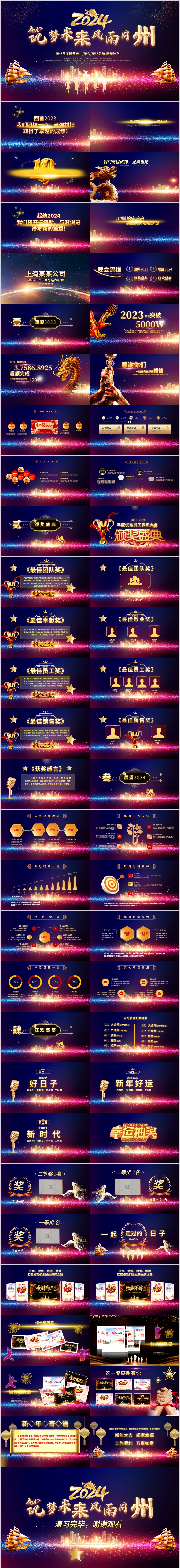 2024年宽屏年会龙年新年年终表彰颁奖典礼春节晚会ppt模板