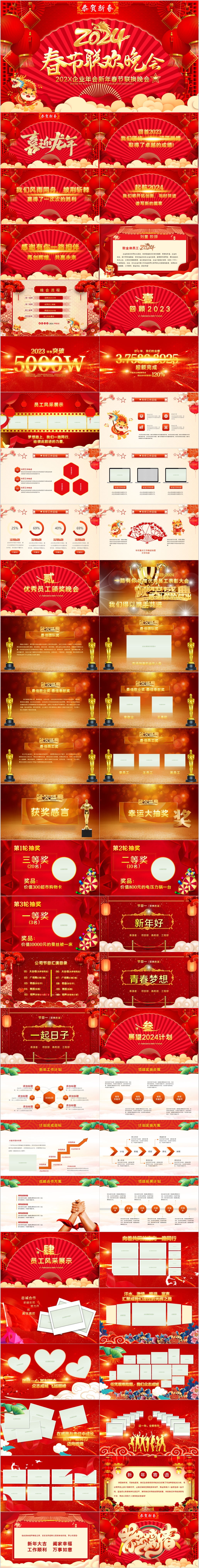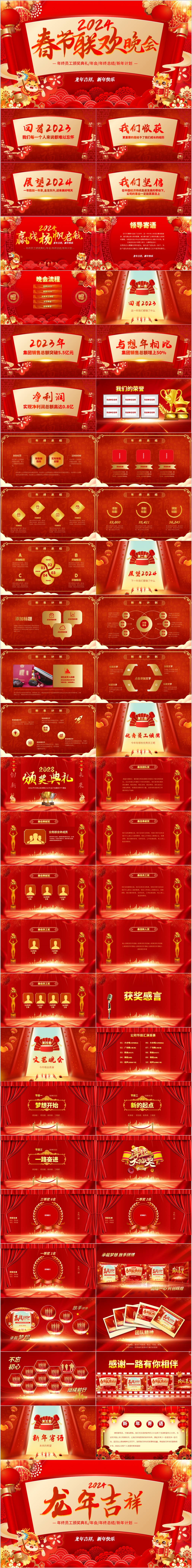 红色2024龙年年会颁奖表彰新年春节联欢晚会ppt模板