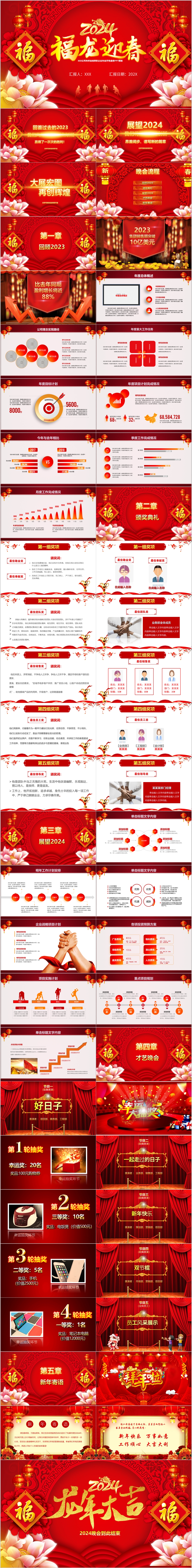 中国风2024福龙迎春年终表彰新年计划年会颁奖晚会ppt模板