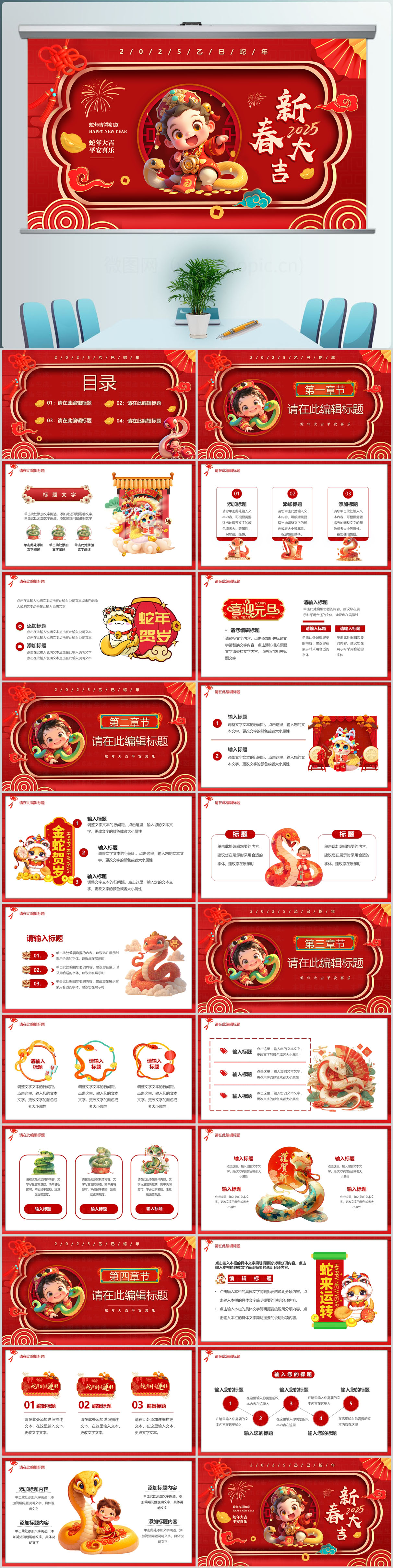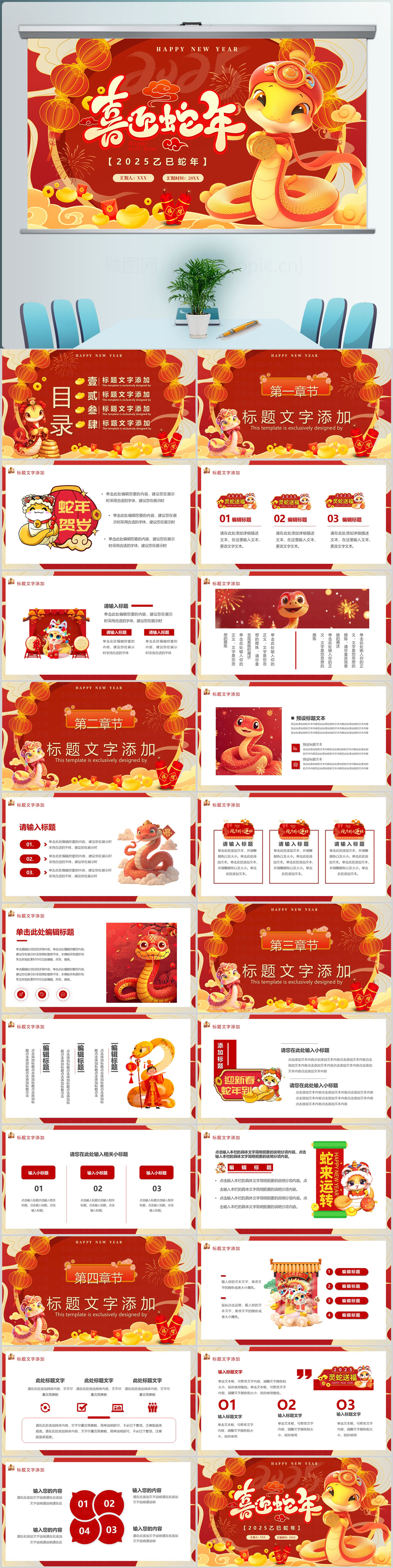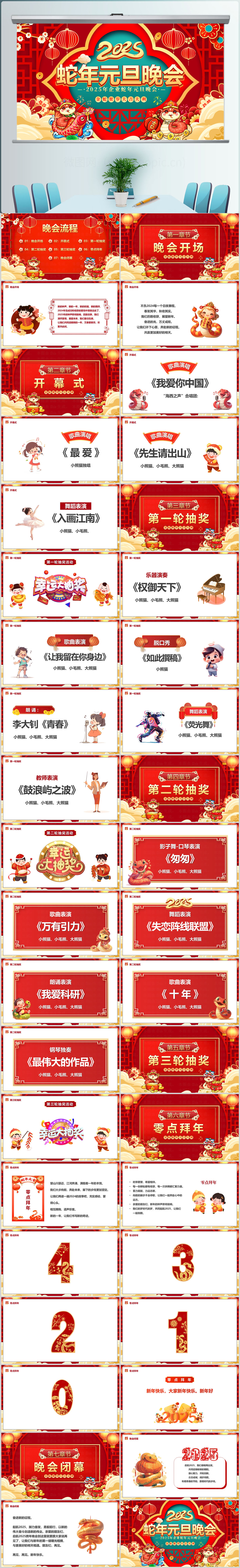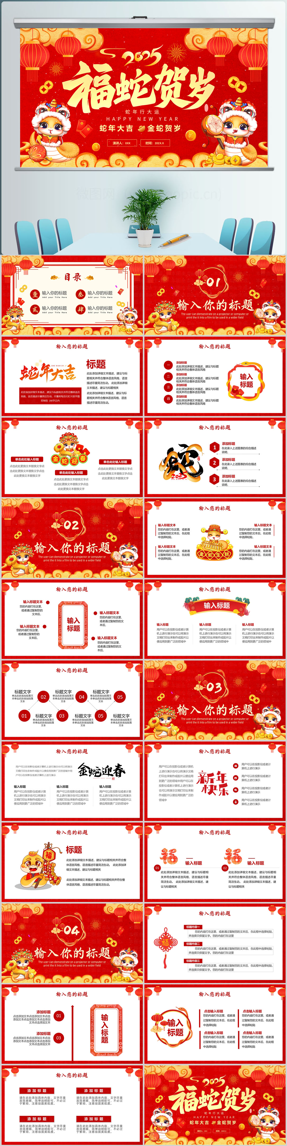 喜庆中国风2025蛇年元旦年会颁奖PPT模板设计