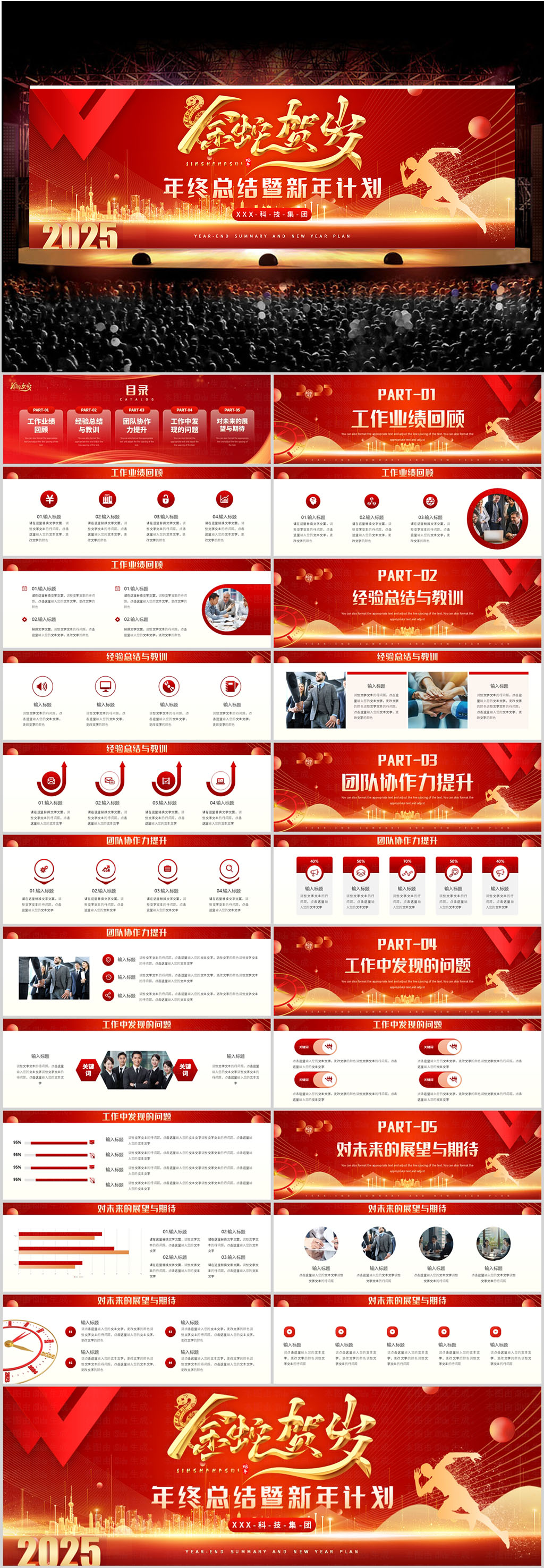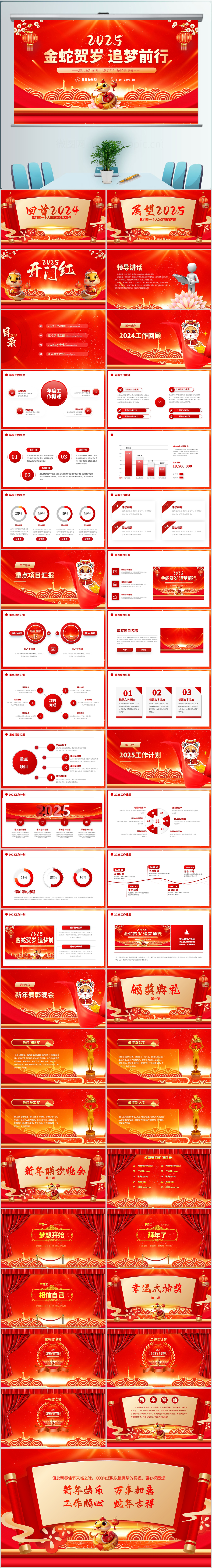 2025年蛇年颁奖典礼企业年会工作总结会议PPT模版设计