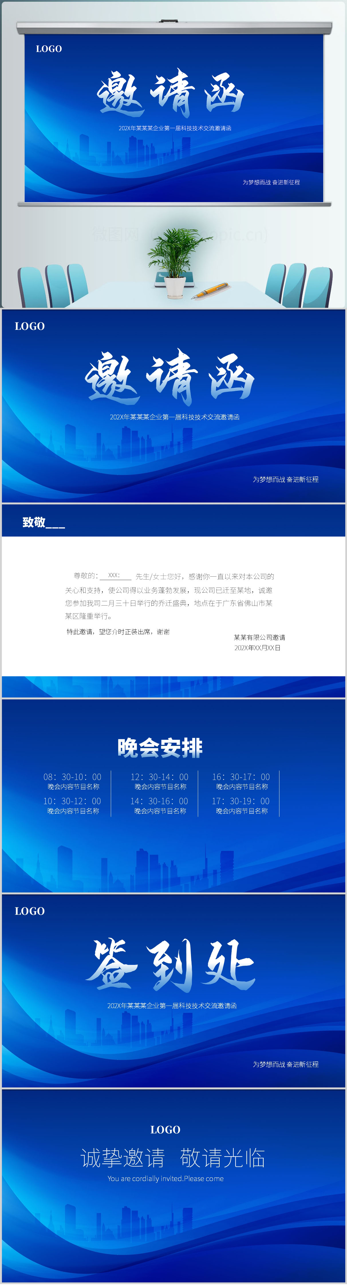 2025蓝色大气企业年会活动发布会邀请函通用PPT模板