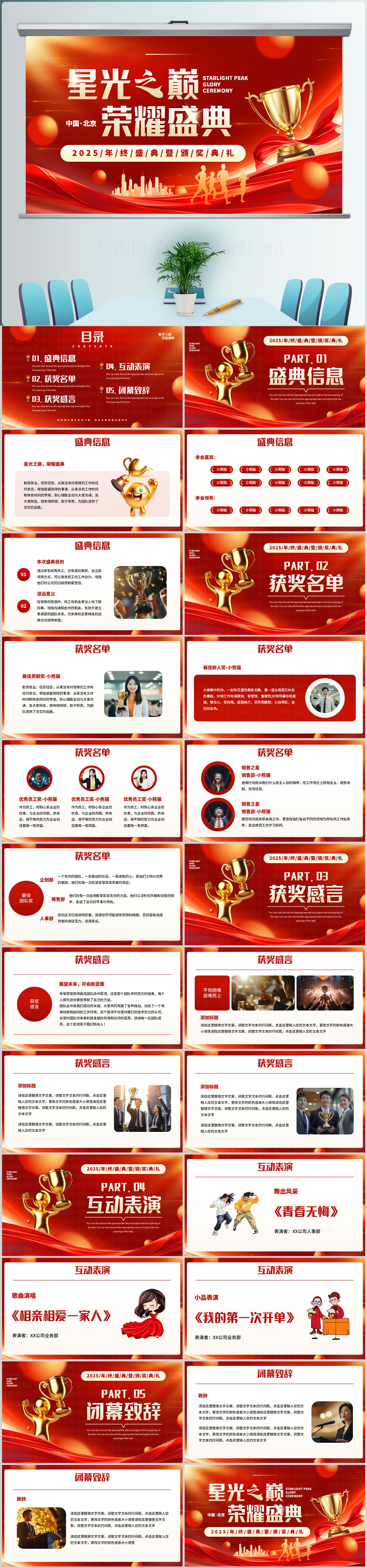 红色喜庆年会颁奖典礼年会开场年会庆典PPT模板设计