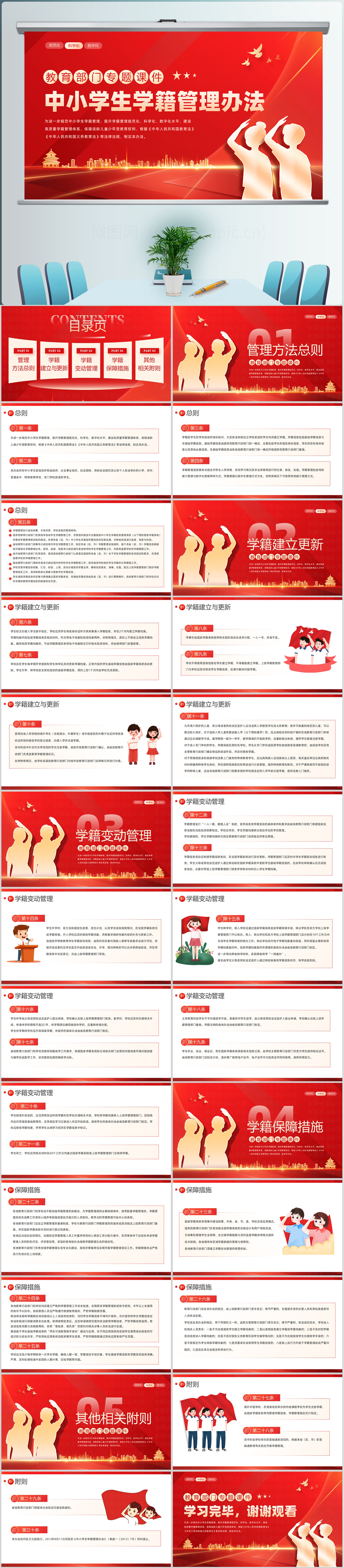 2025红色中小学生学籍管理办法专题教育课件PPT模板