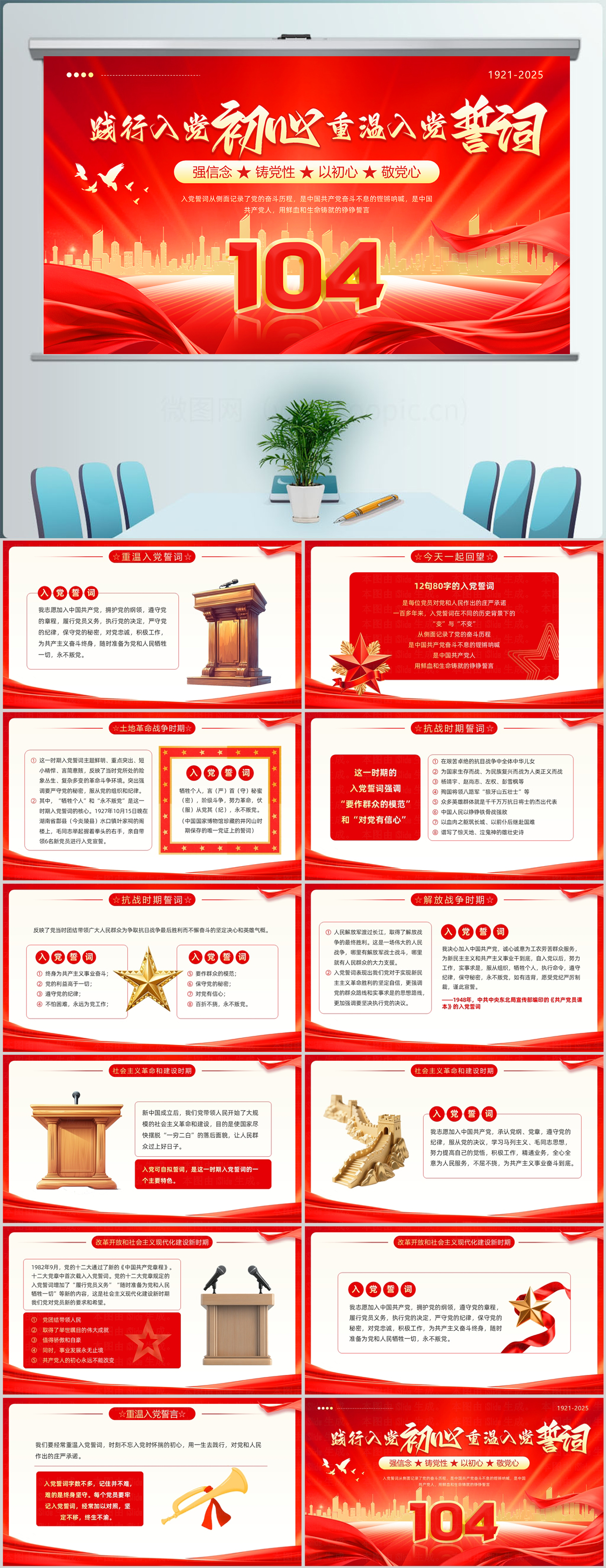 红色大气七一建党节专题重温入党誓词培训党课ppt模板