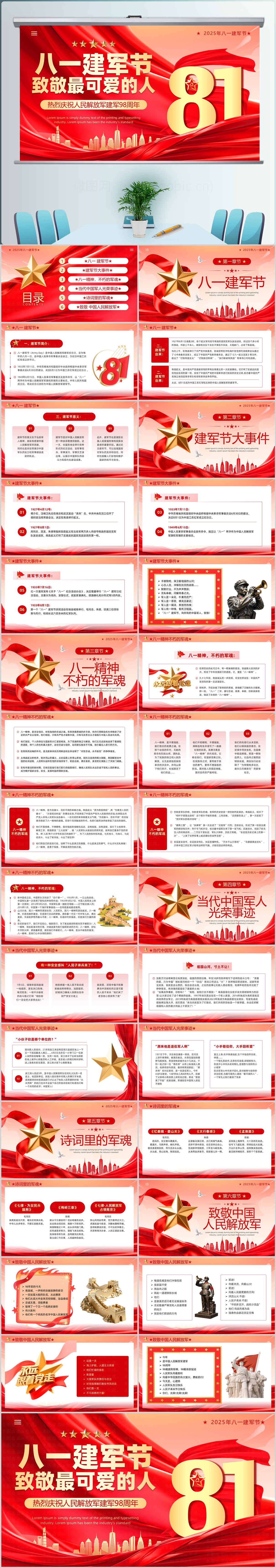 红色庆祝八一建军节98周年活动主题宣讲党课ppt模板