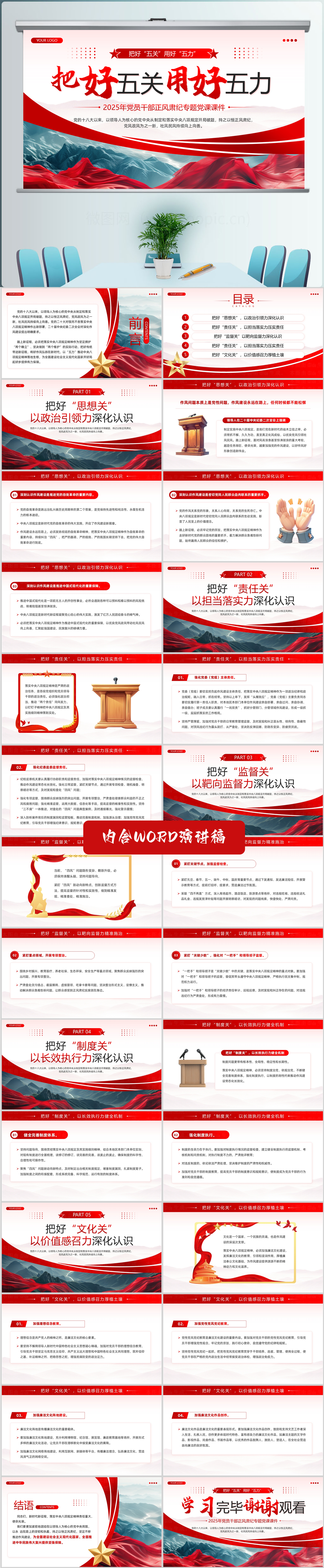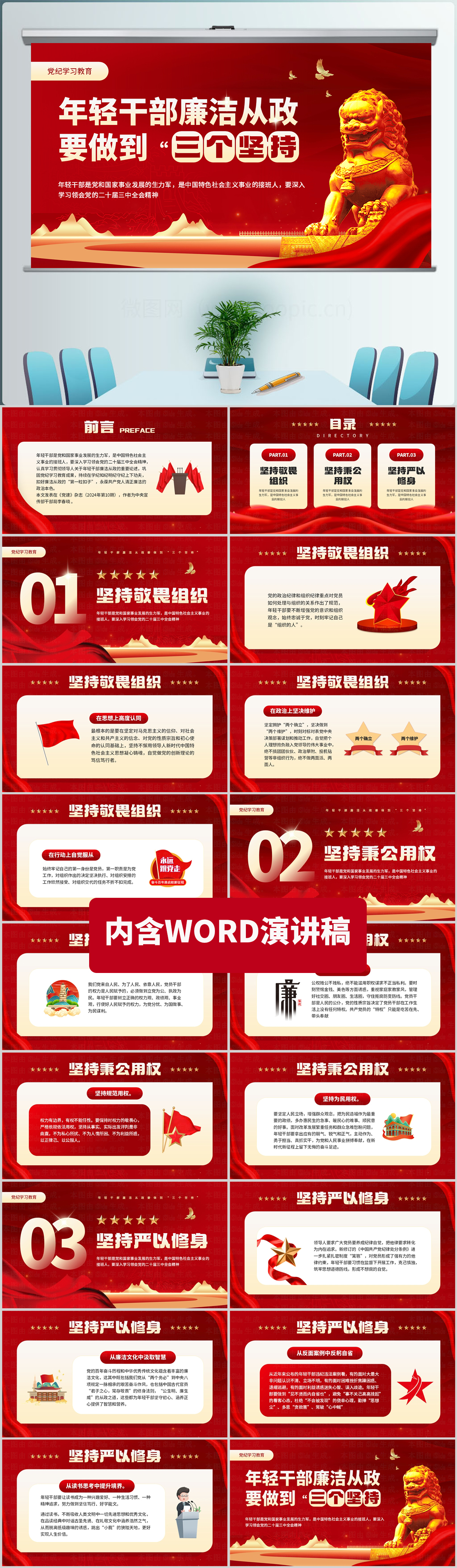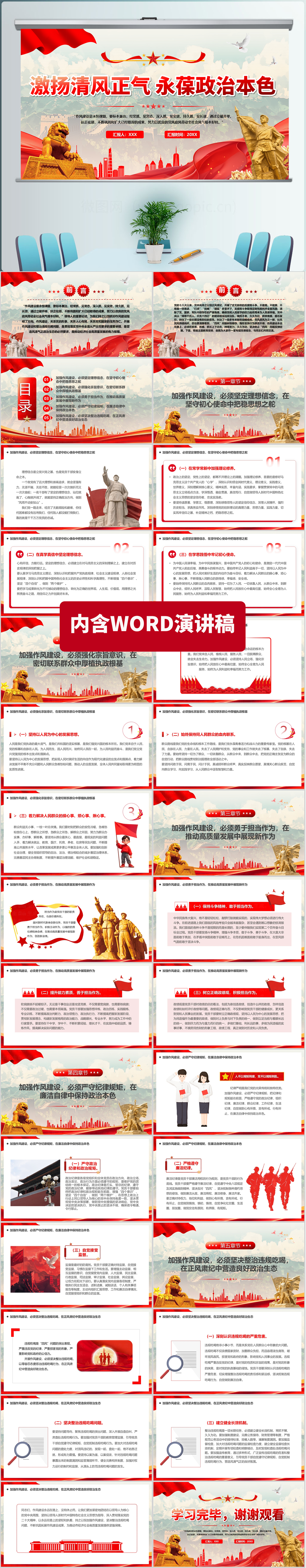 红色党建风激扬清风正气永葆政治本色作风建设党课ppt模板(内含WORD演讲稿)