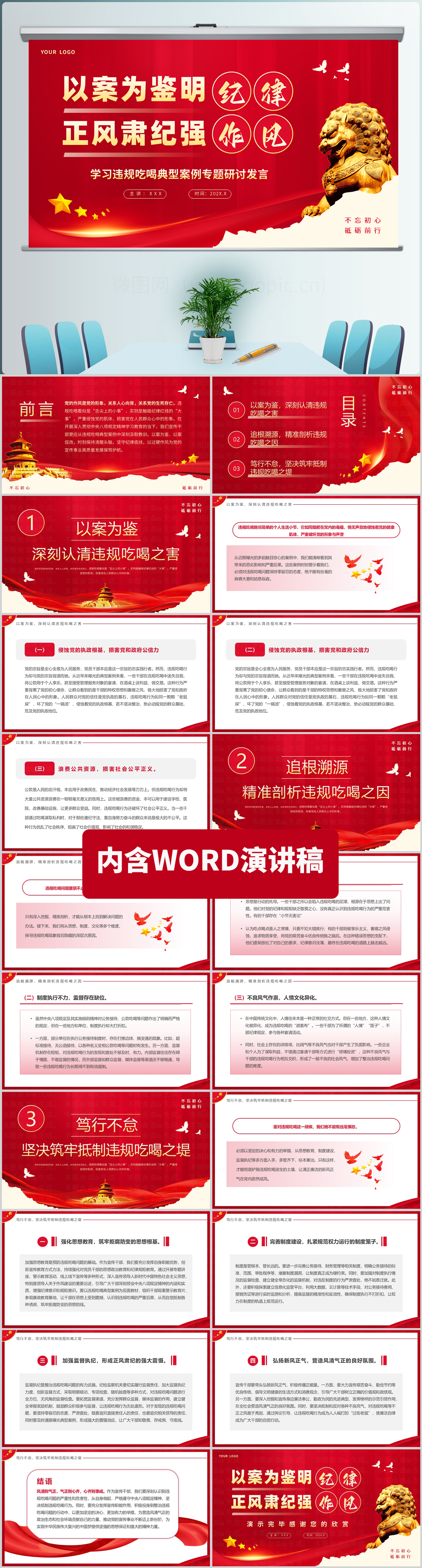 学习违规吃喝典型案例正风肃纪党课ppt模板()内含WORD演讲稿)