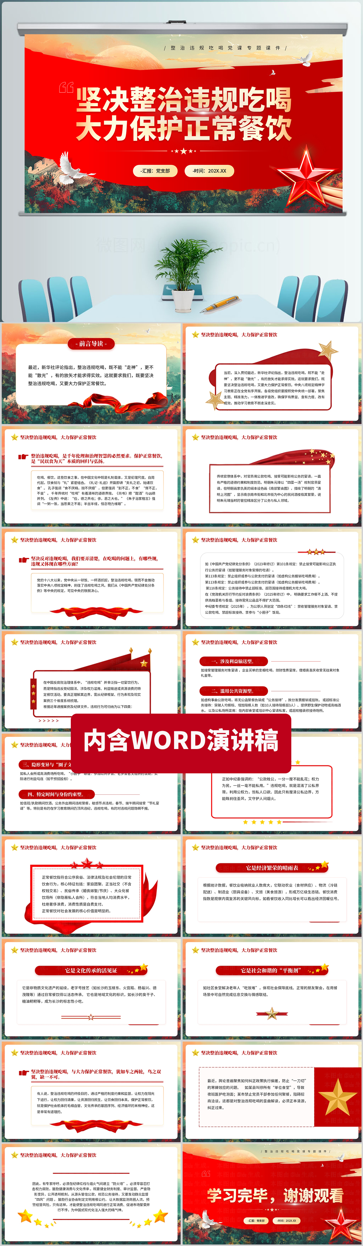 坚决整治违规吃喝大力保护正常餐饮正风肃纪党课ppt模板(内含WORD演讲稿)