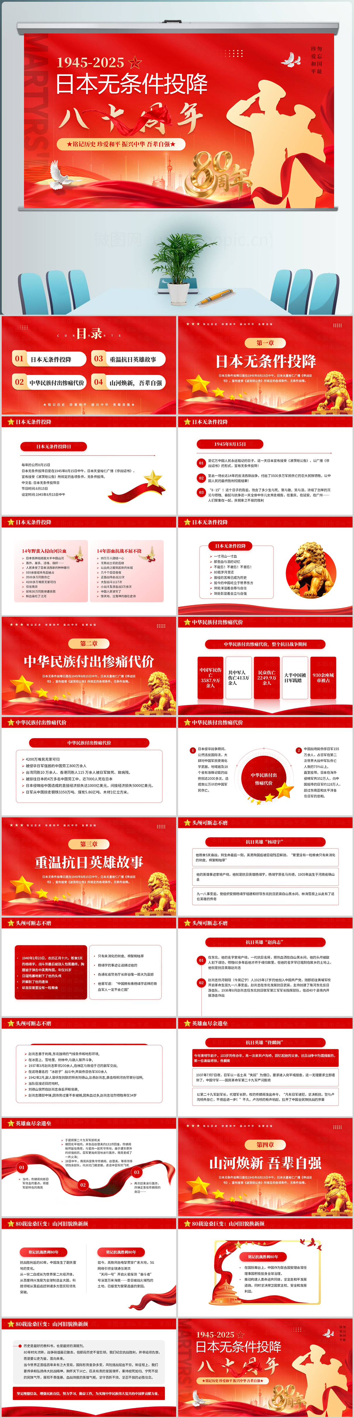 红色纪念抗战胜利暨日本投降80周年课件ppt 模板