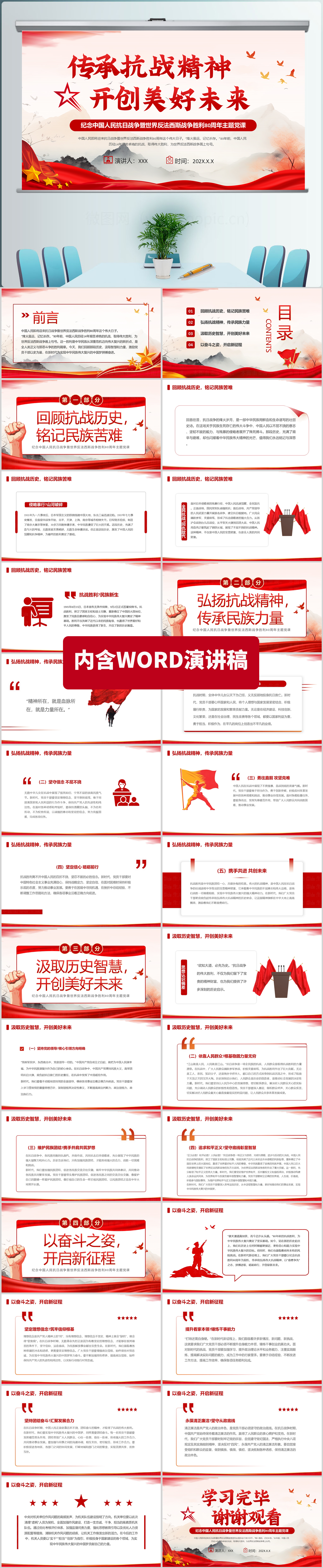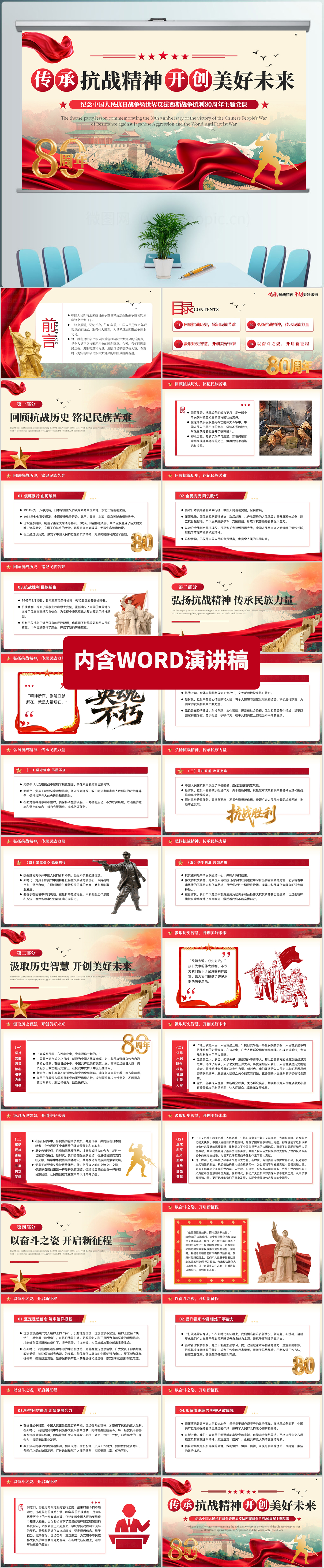 2025纪念抗日战争胜利80周年宣讲党课ppt模板(内含WORD演讲稿)