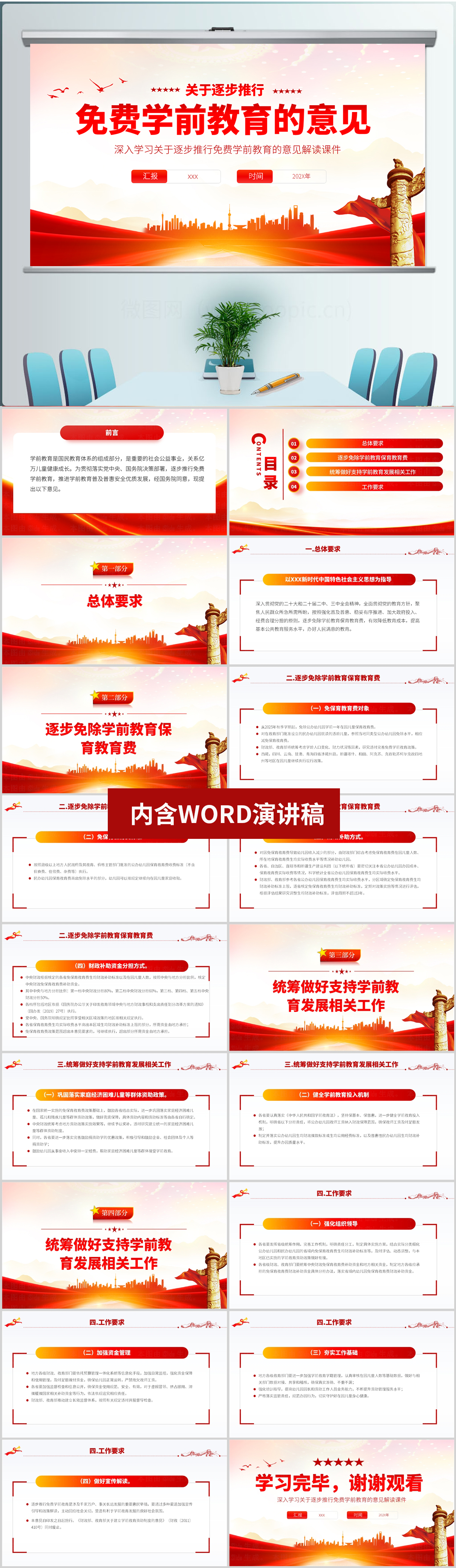 关于逐步推行免费学前教育的意见ppt模板(内含WORD演讲稿)