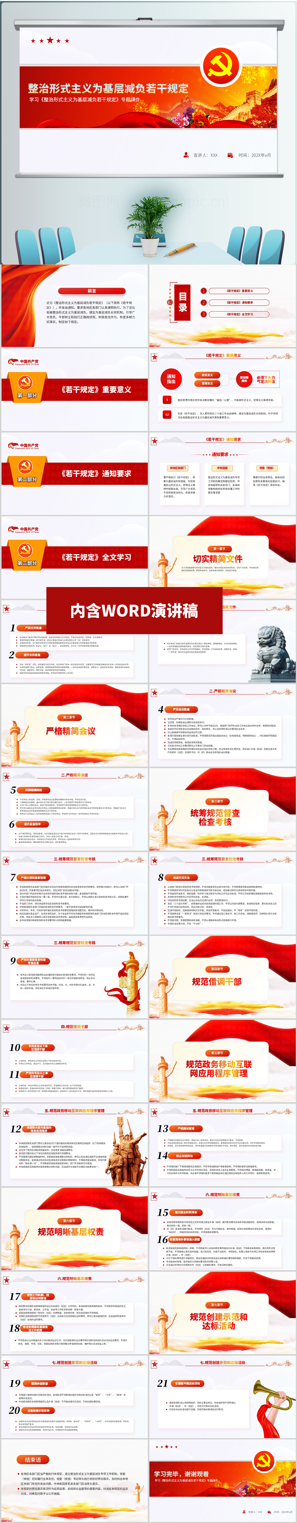 学习整治形式主义为基层减负若干规定党课ppt模板(内含WORD演讲稿)