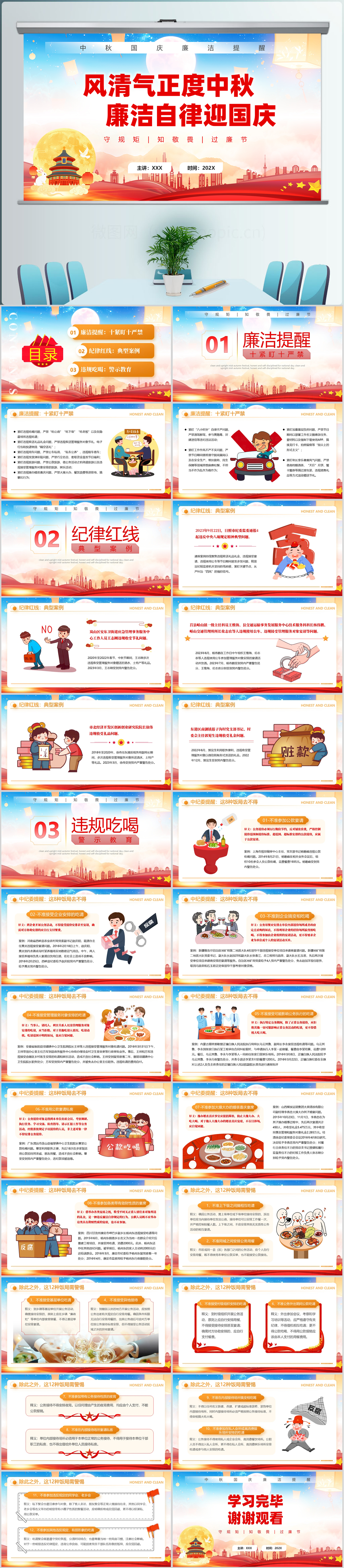 风清气正度中秋廉洁自律迎国庆廉政教育党课ppt模板
