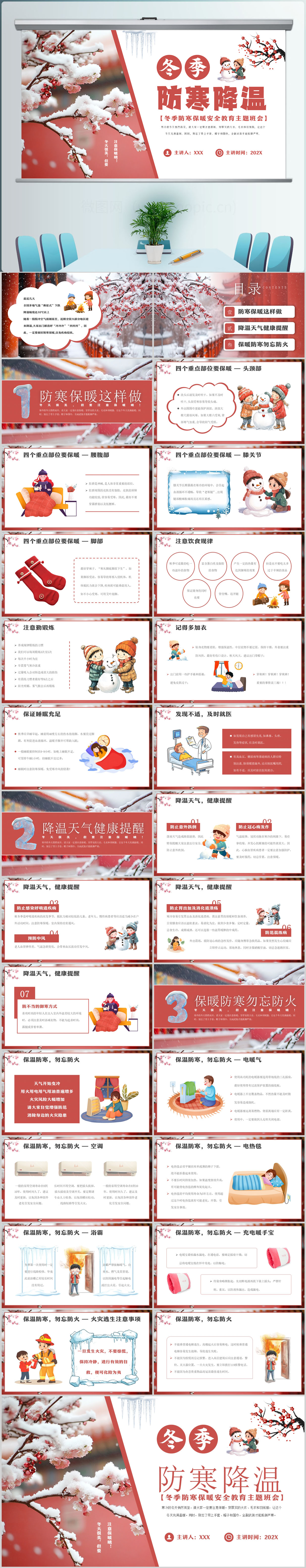 简约风冬季防寒降温安全教育主题班会PPT模板设计
