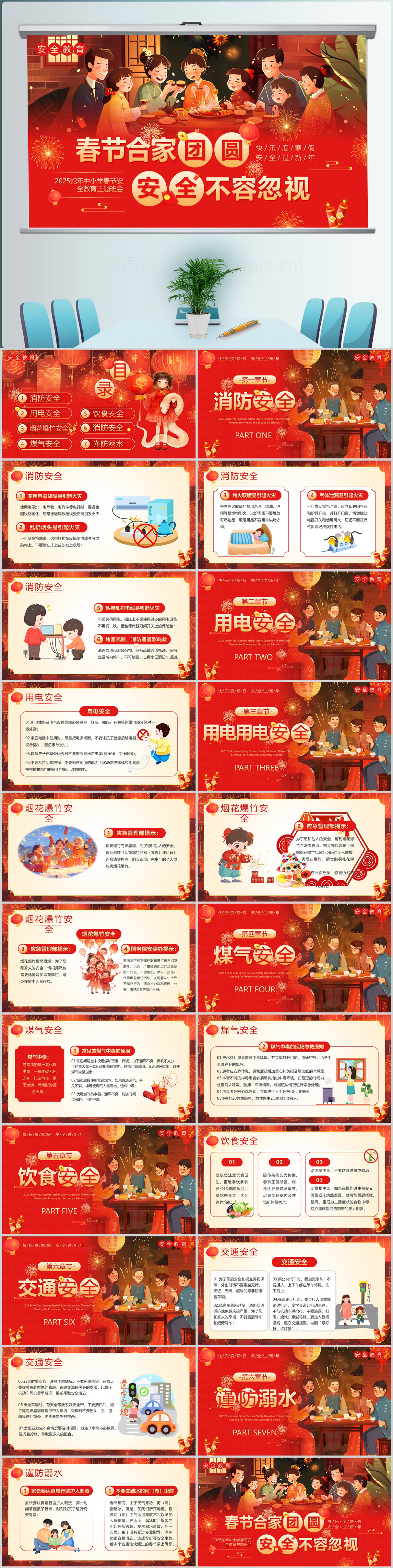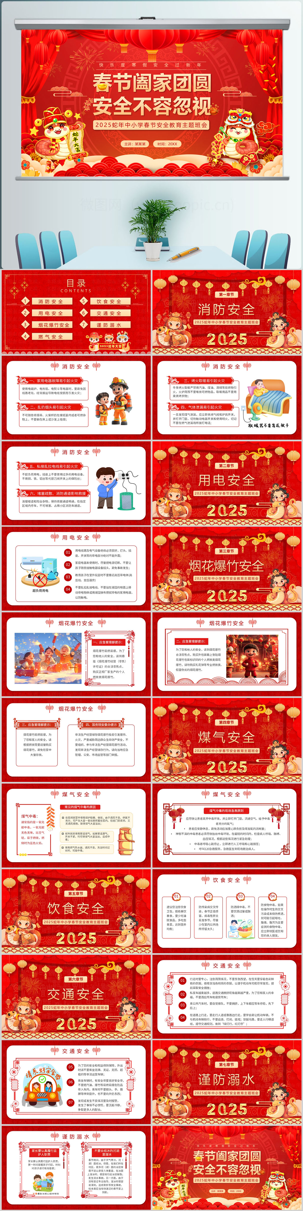 红色新年春节蛇年寒假安全教育课件ppt模版设计