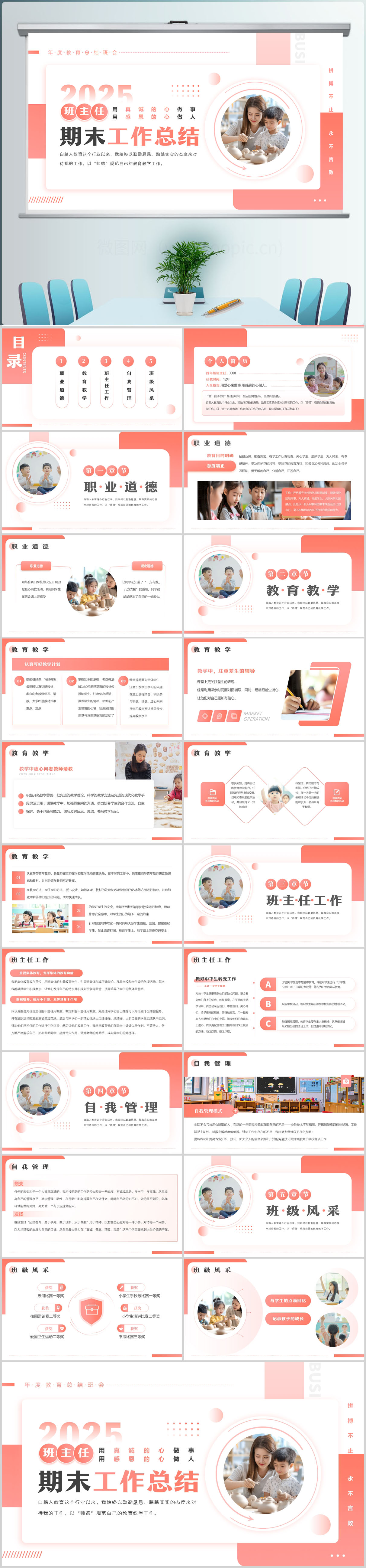 校园中小学班主任期中工作总结期末工作汇报PPT模板设计