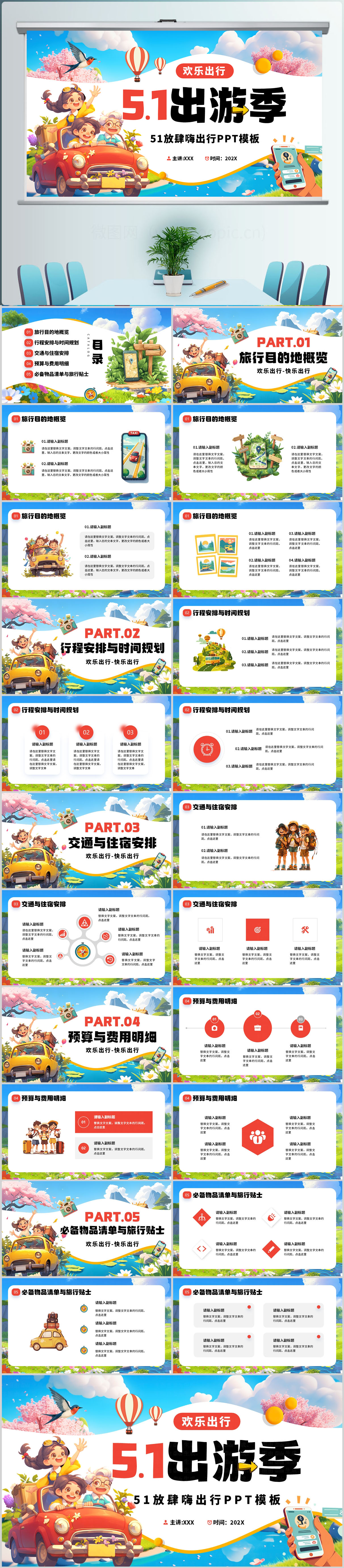 5.1劳动节出游攻略PPT模板设计